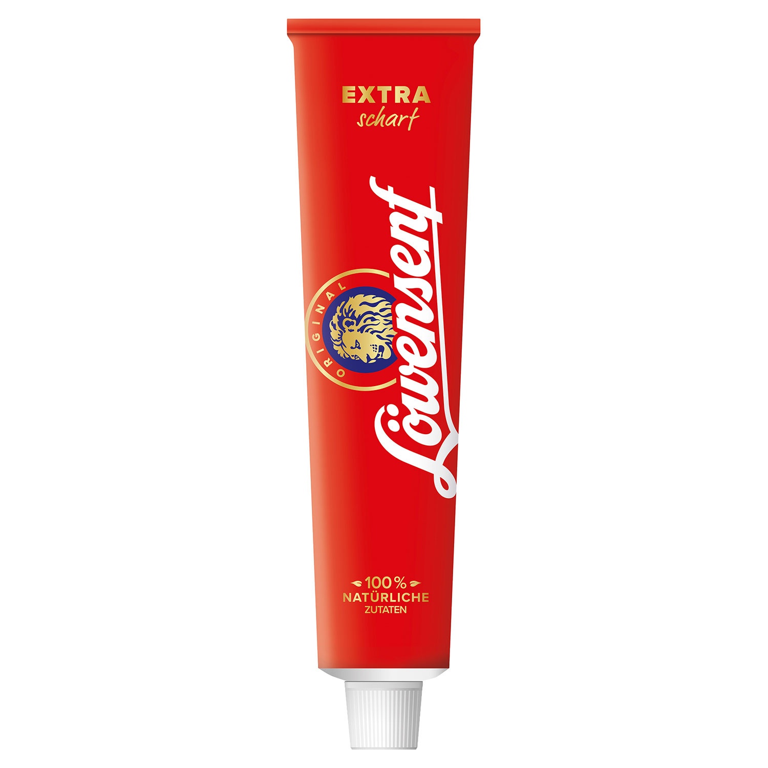 SCHARF, SCHÄRFER, LÖWENSENF EXTRA. Bereits seit 1920 ist der Löwensenf Extra ein Synonym für scharfen Senf. Hergestellt aus nur vier natürlichen Zutaten: Senfsaat, Branntweinessig, Trinkwasser und Salz. Die einzigartige Schärfe des Extra wird allein über die braune Senfsaat und deren Verarbeitung nach dem traditionellen Dijon-Verfahren erreicht – weitere Zugaben braucht es nicht. Pur als Dip zu Wurst oder Steak, andere schwören beim Kochen auf den Extra-Kick.