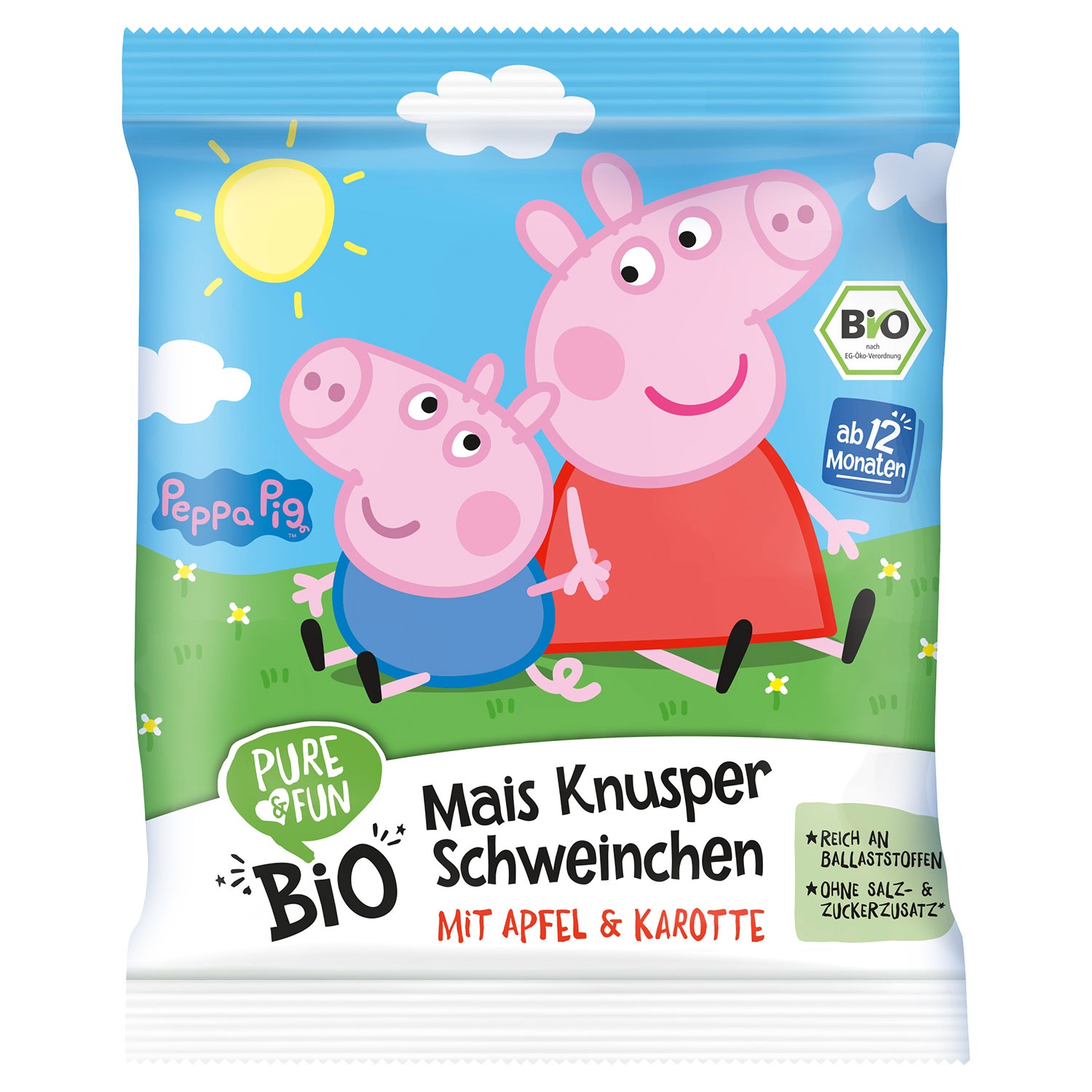 Gepuffter Bio Knusper Snack aus Mais mit Apfel- und Karottenpulver