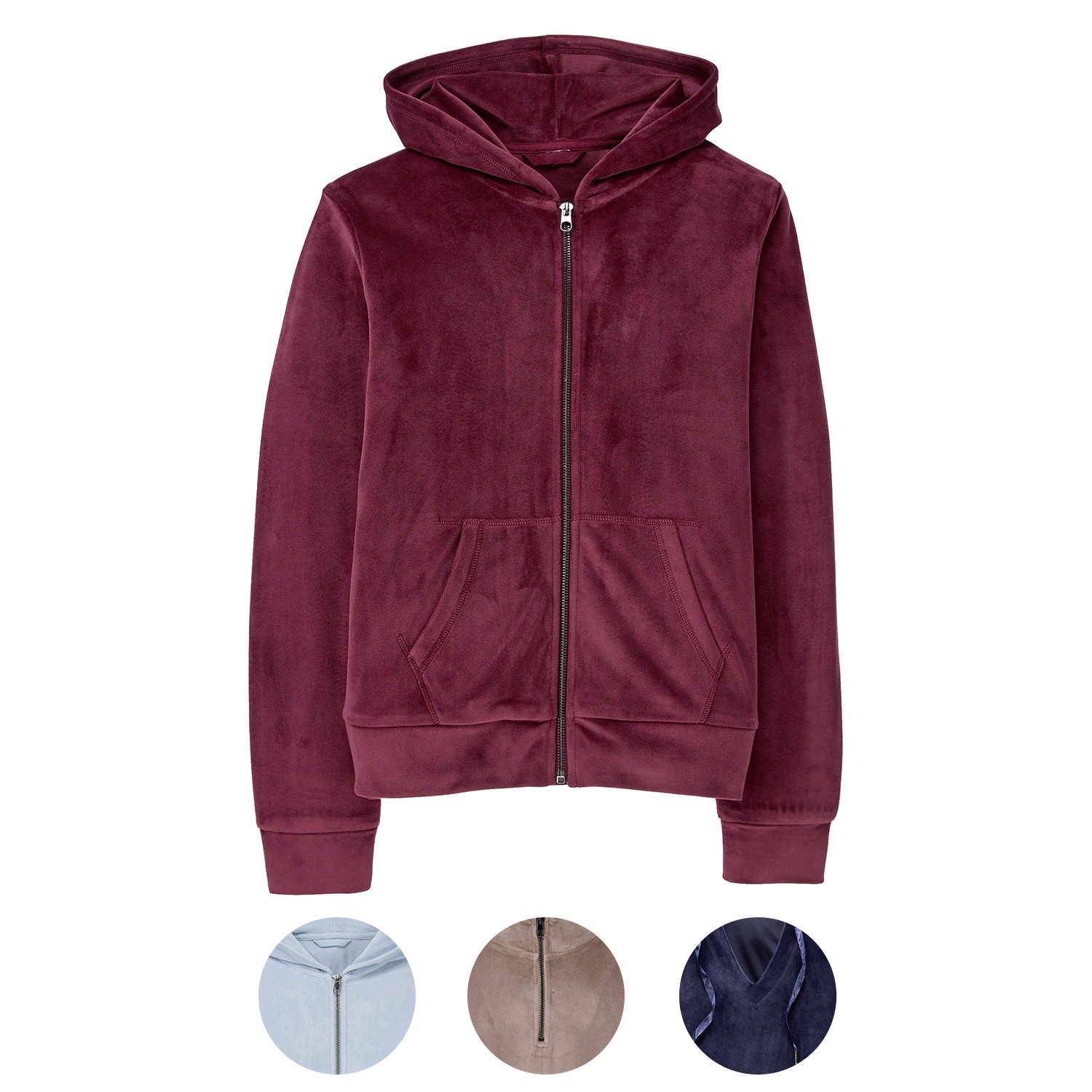 Kapuzenstrickjacke mit Kängurutasche und Rundhalsausschnitt oder Kapuzenpullover mit Satinkordelzug