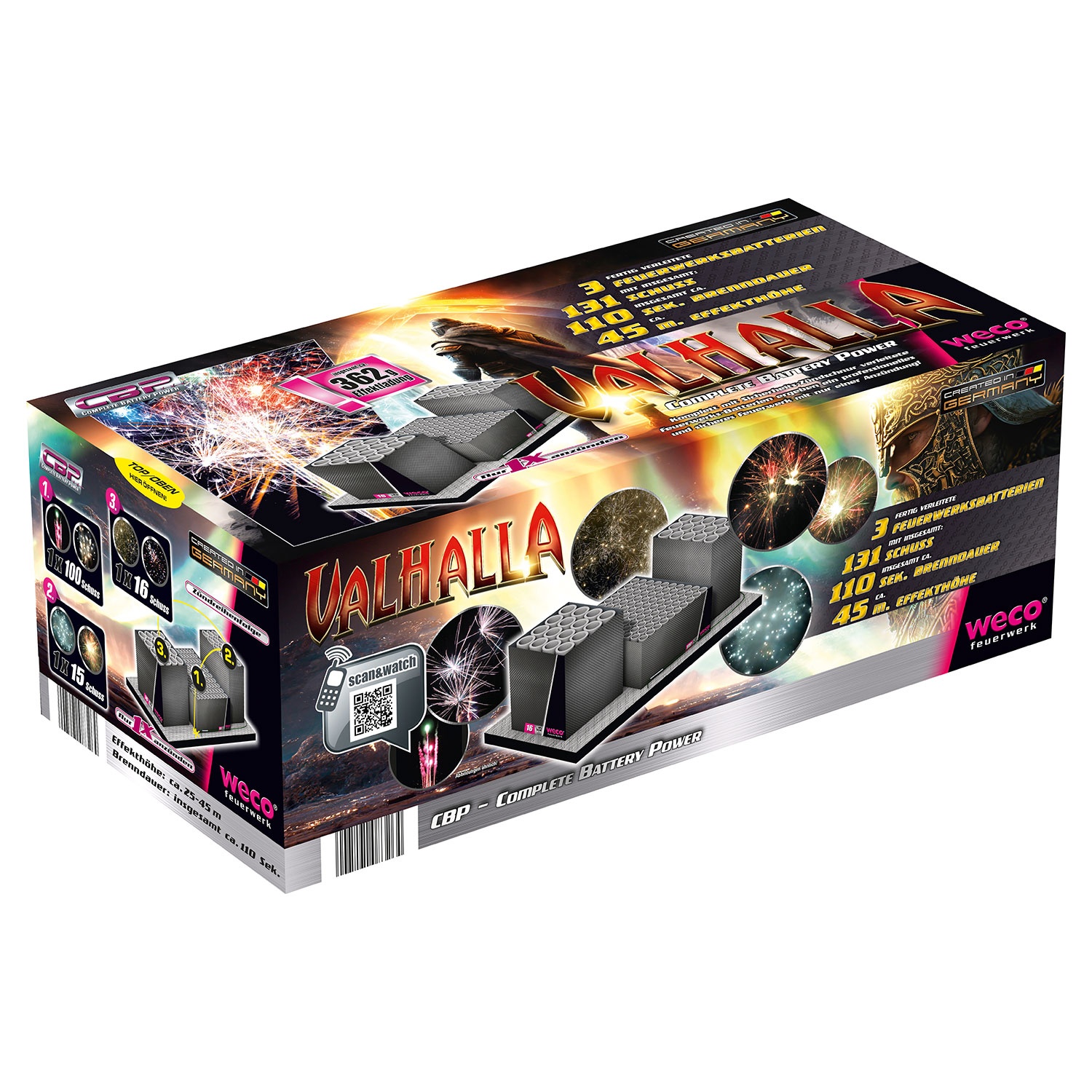 - 3 verbundene Feuerwerksbatterien mit insgesamt 131-Schuss, Brenndauer insgesamt ca. 110 Sekunden, Kaliber bis 19 mm:
