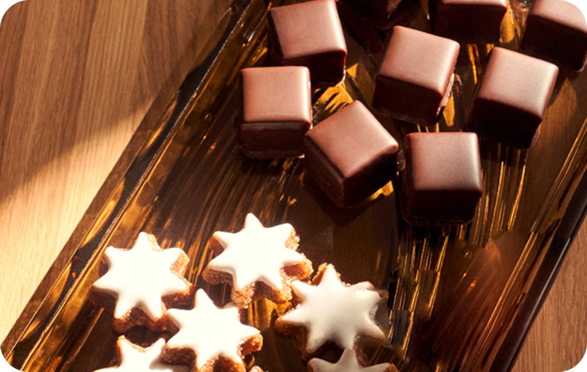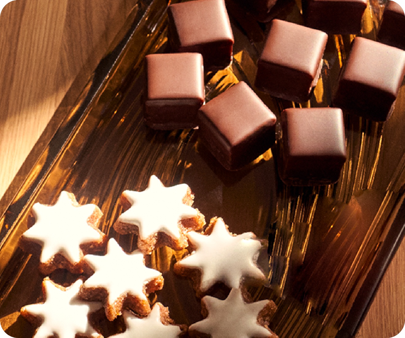 In der festlichen Zeit liegt die Freude nicht nur im Beschenken, sondern auch in den für die Weihnachtszeit typischen Aromen. Entdecke zum Beispiel den zauberhaften Geschmack unserer schokolierten Oblaten Lebkuchen, Dominosteine oder Zimtsterne aus dem WINTERTRAUM Sortiment.