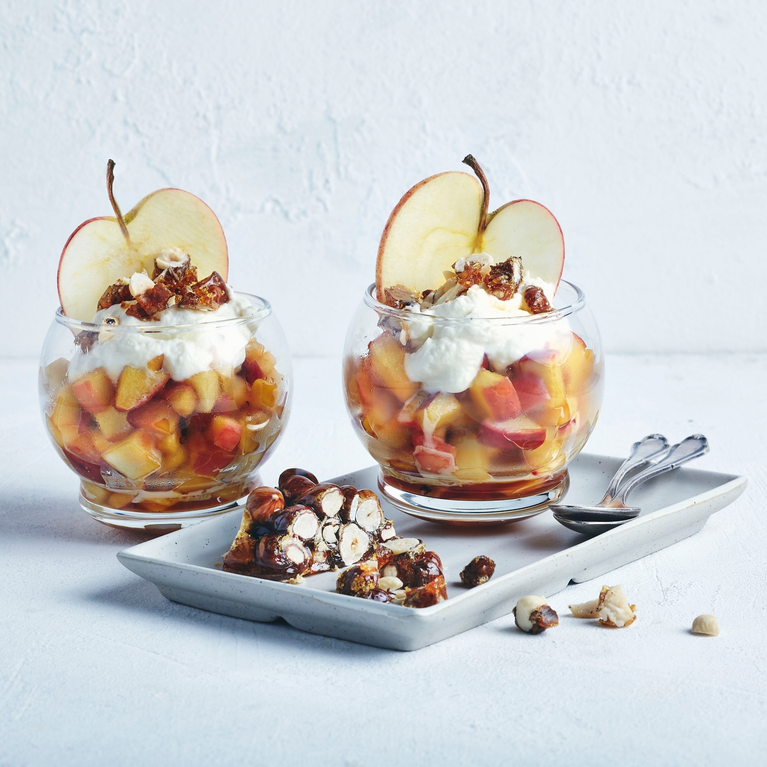 Apfel-Sahne-Dessert mit Haselnusskrokant