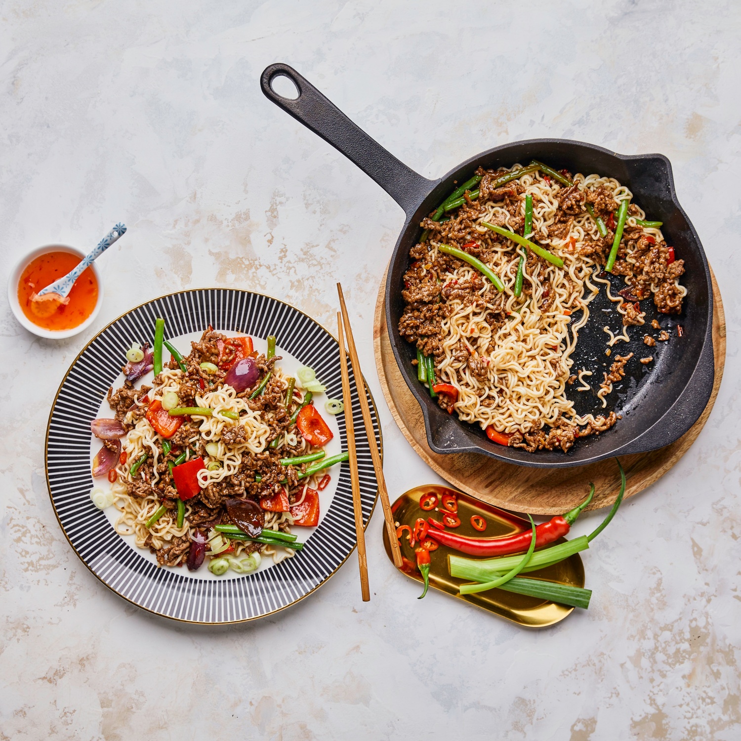Folge der Geschmacksexplosion: Mit der Schärfe von Chili, köstlichen Mie-Nudeln und feinem Erdnuss-Aroma holst du dir das Feuer Asiens auf die Teller. Zum Rezept