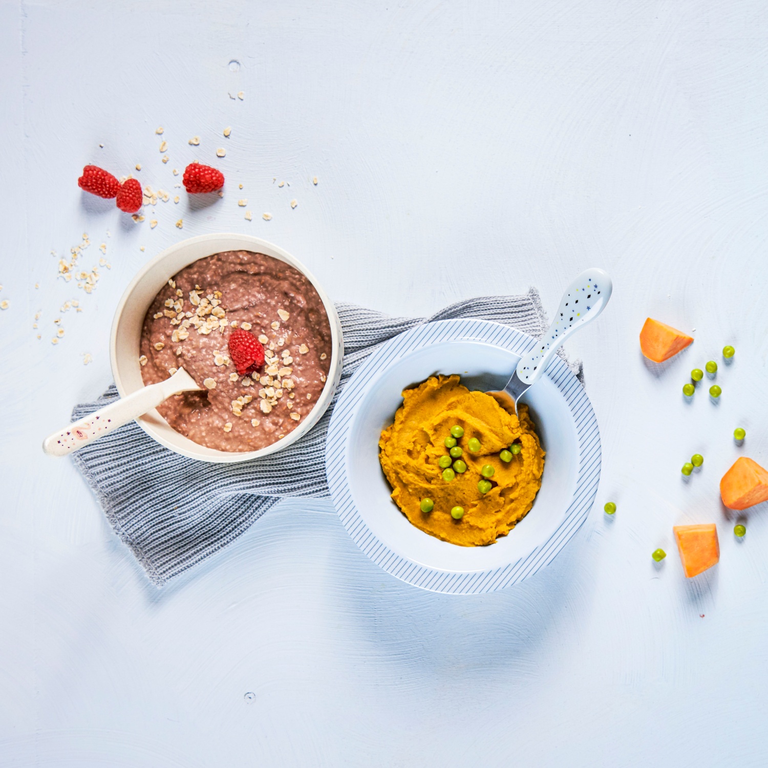 Babybrei: Himbeer-Banane und Süsskartoffel-Erbse