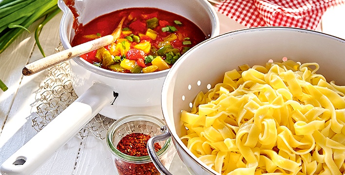 Bandnudeln mit Tomaten-Paprika-Soße