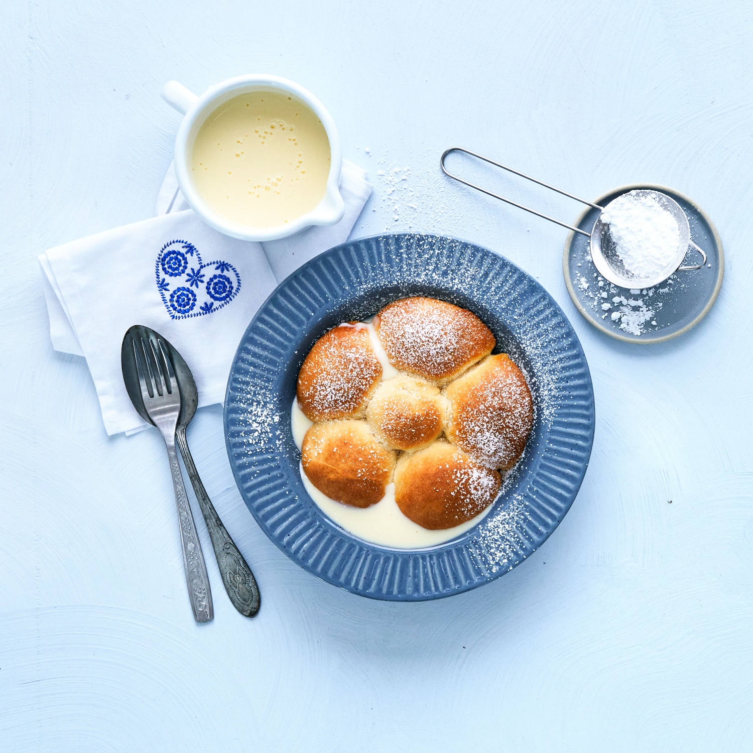 - Die Buchteln mit Puderzucker bestäuben und noch warm mit der Vanillesoße verzehren.
