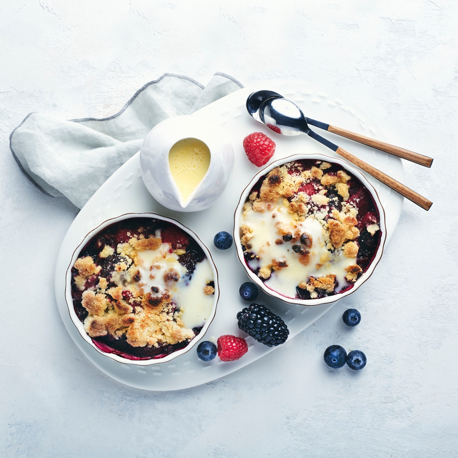 Beerencrumble mit Vanillesauce