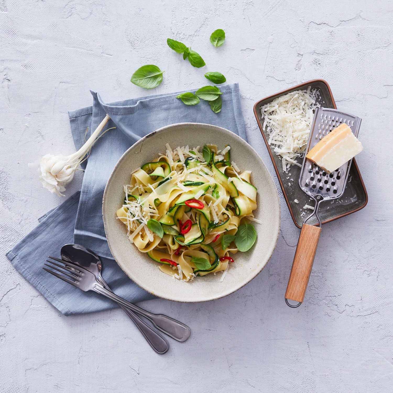 Der italienische Klassiker wird durch den feinen Geschmack der Zucchini ergänzt. Die Bio-Tagliatelle mit Zucchini aglio e olio ist ein aromatisches Gericht und ideal für warme Tage. Zum Rezept