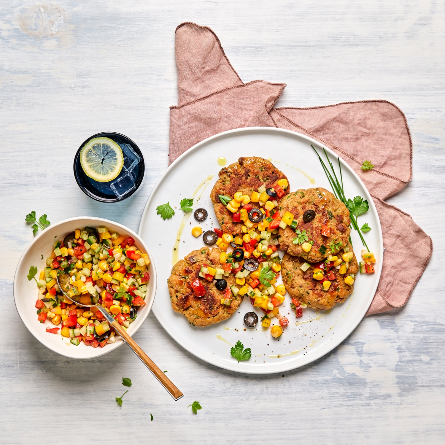 - Die gebratenen Brotküchlein mit dem Konfetti-Salat servieren.