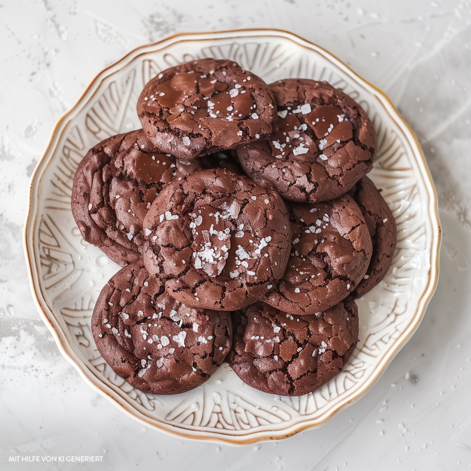 - Vor dem Servieren die Brownie-Cookies mit grobem Meersalz bestreuen.