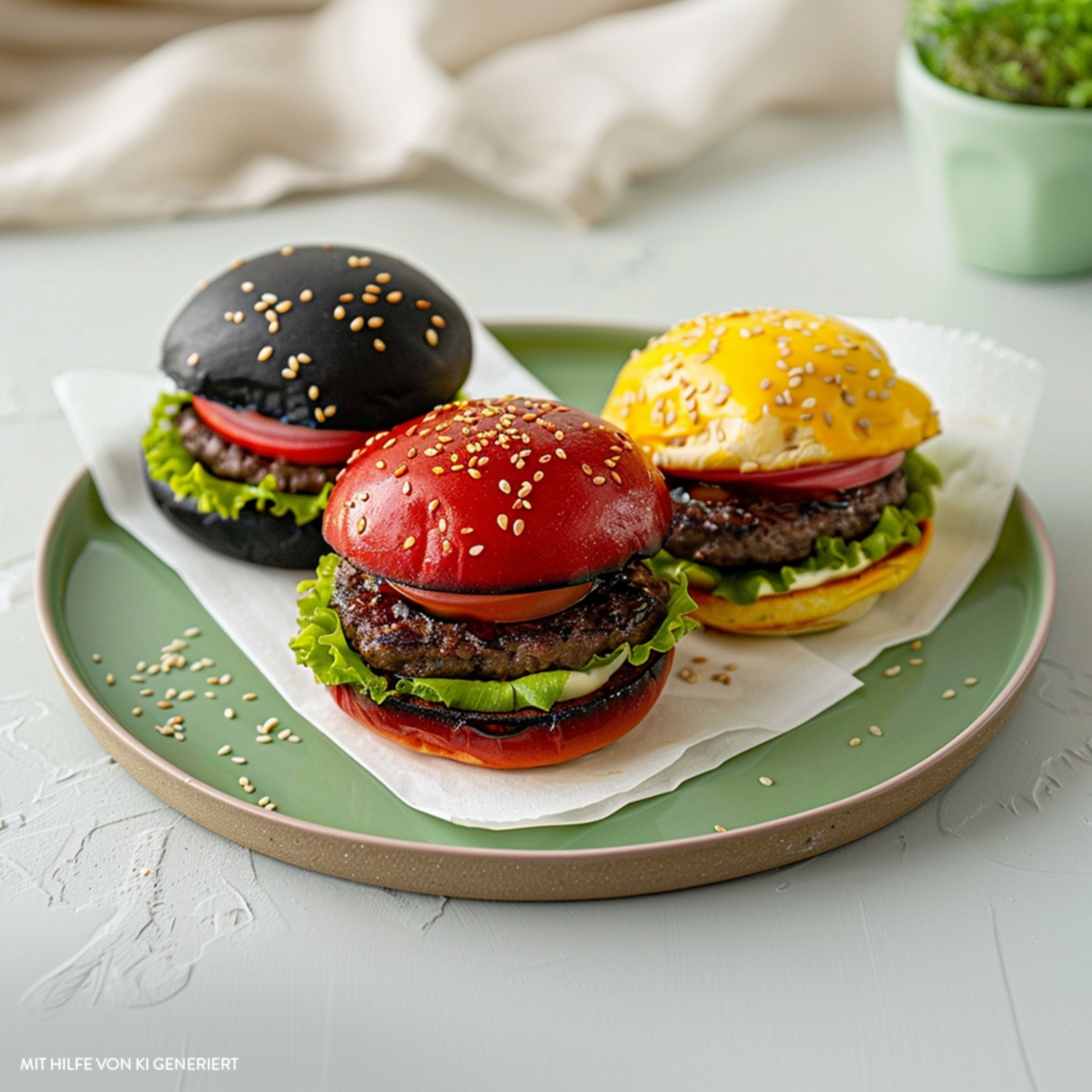An die Burger, fertig, los! Die bunten Burger in Schwarz-Rot-Gold sind perfekt geeignet für deine nächste Fußball-Party. Zum Rezept