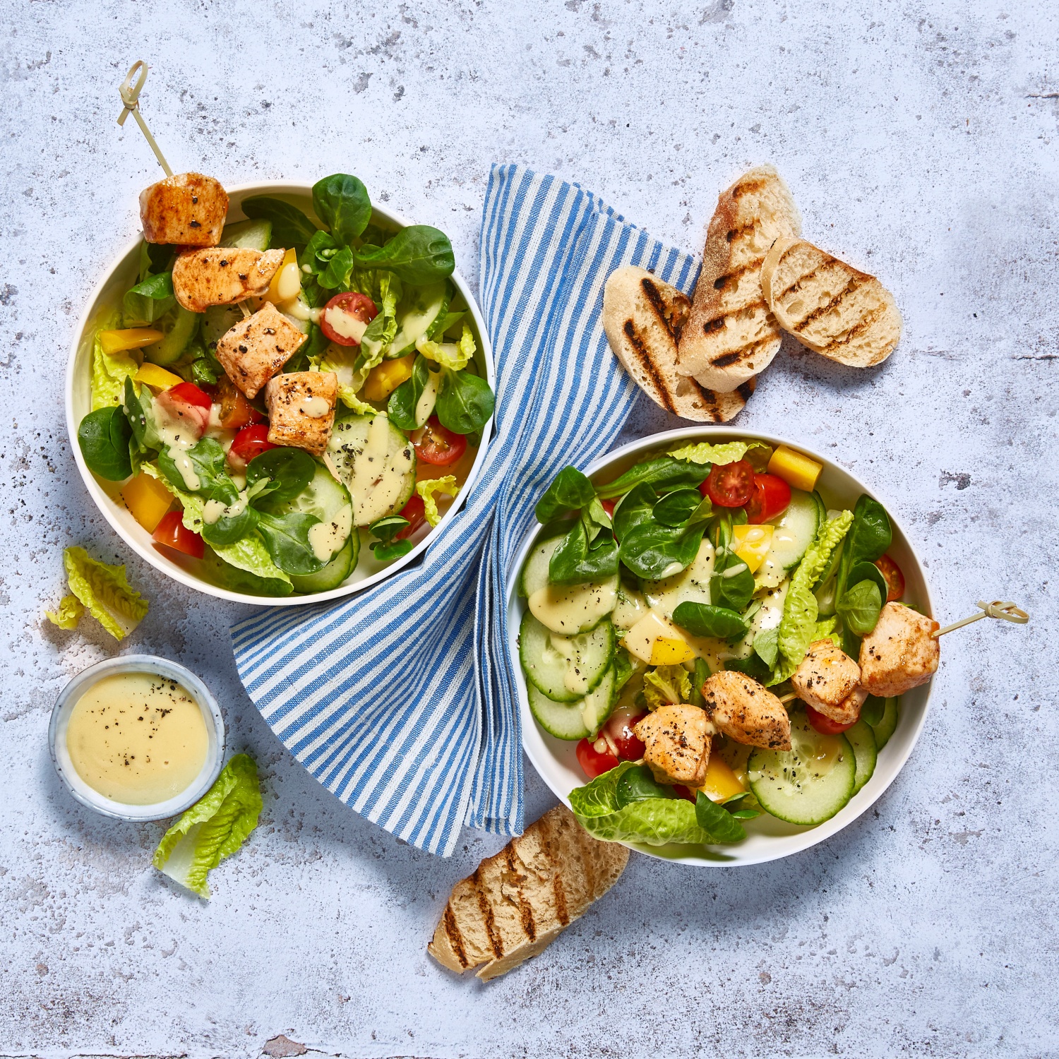 Dieser farbenfrohe Salat kombiniert das Beste aus frischem und erfrischendem Sommergemüse mit köstlichen Hähnchenbruststücken. Wirklich einfach und gesund. Zum Rezept