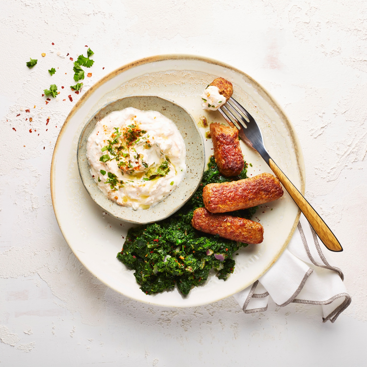 Cevapcici mit würzigem Spinat und Bio-Feta-Joghurt
