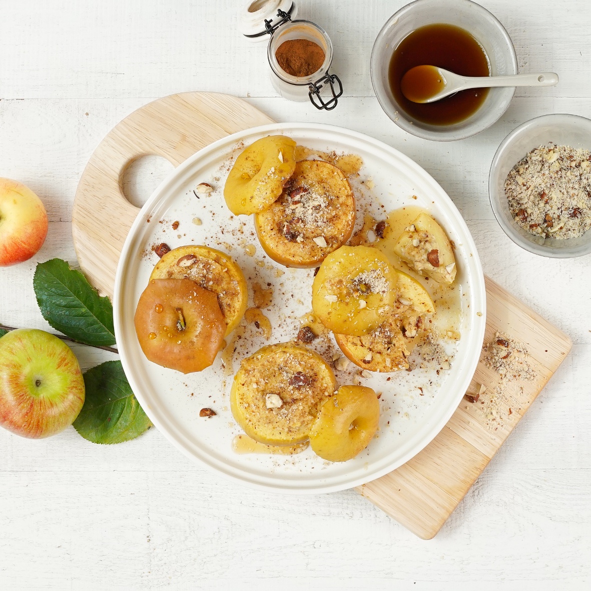 - Die Cheesecake-Masse in die Äpfel füllen und die Deckel wieder schließen.