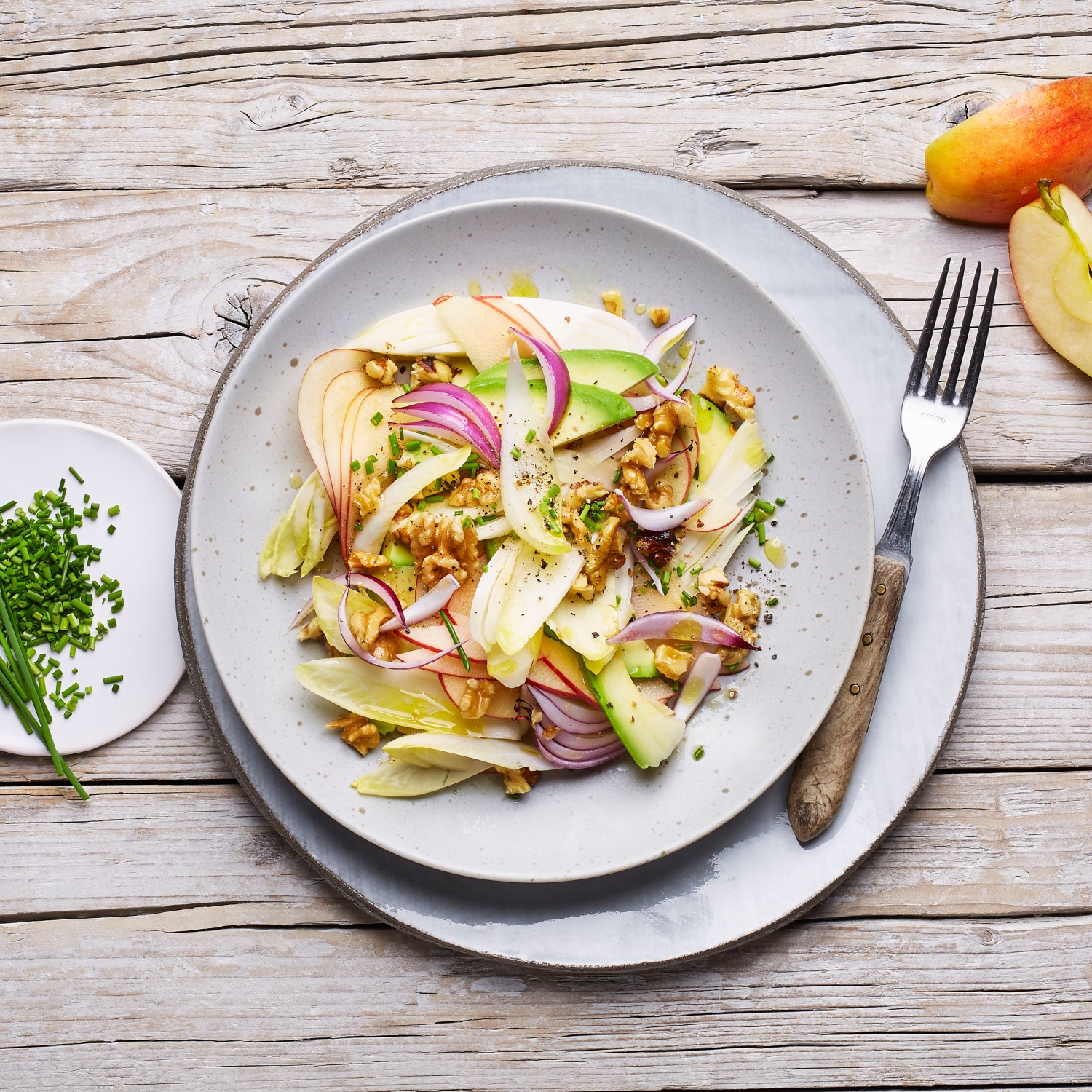 Chicorée-Salat mit Apfel, Avocado und Walnüssen