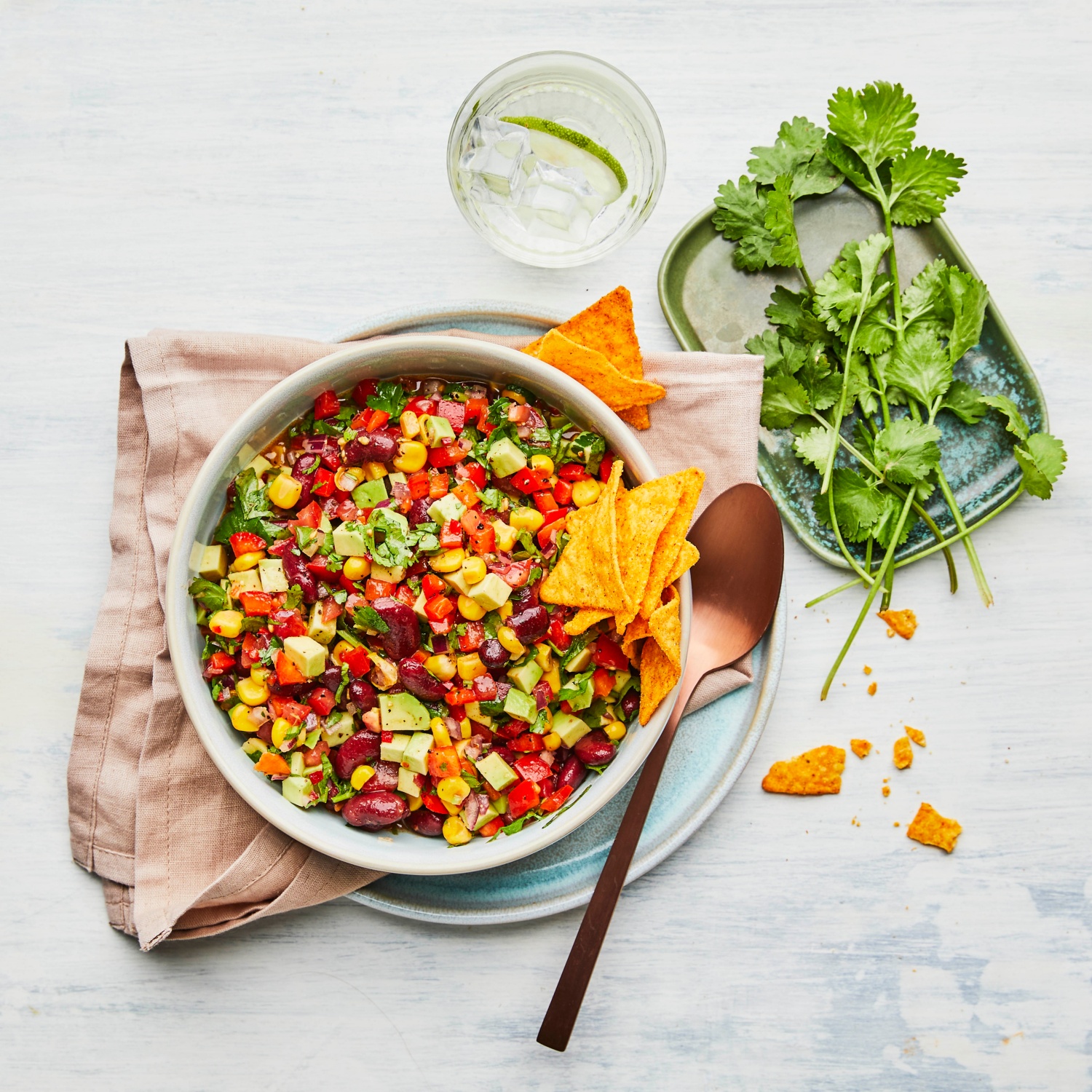 Dieser texanisch angehauchte Bohnensalat ist frisch, lecker und liegt voll im Trend. Dazu gibt’s knusprige Tortillachips.