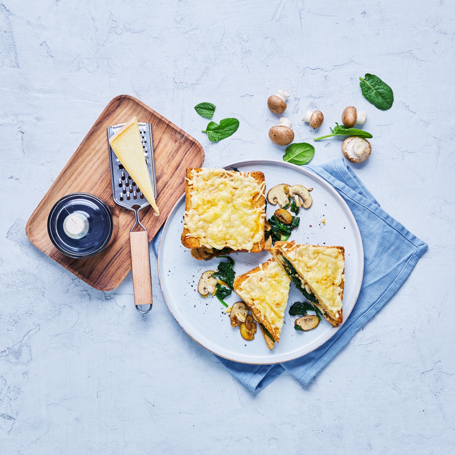 Croque Monsieur mit Champignons und Spinat