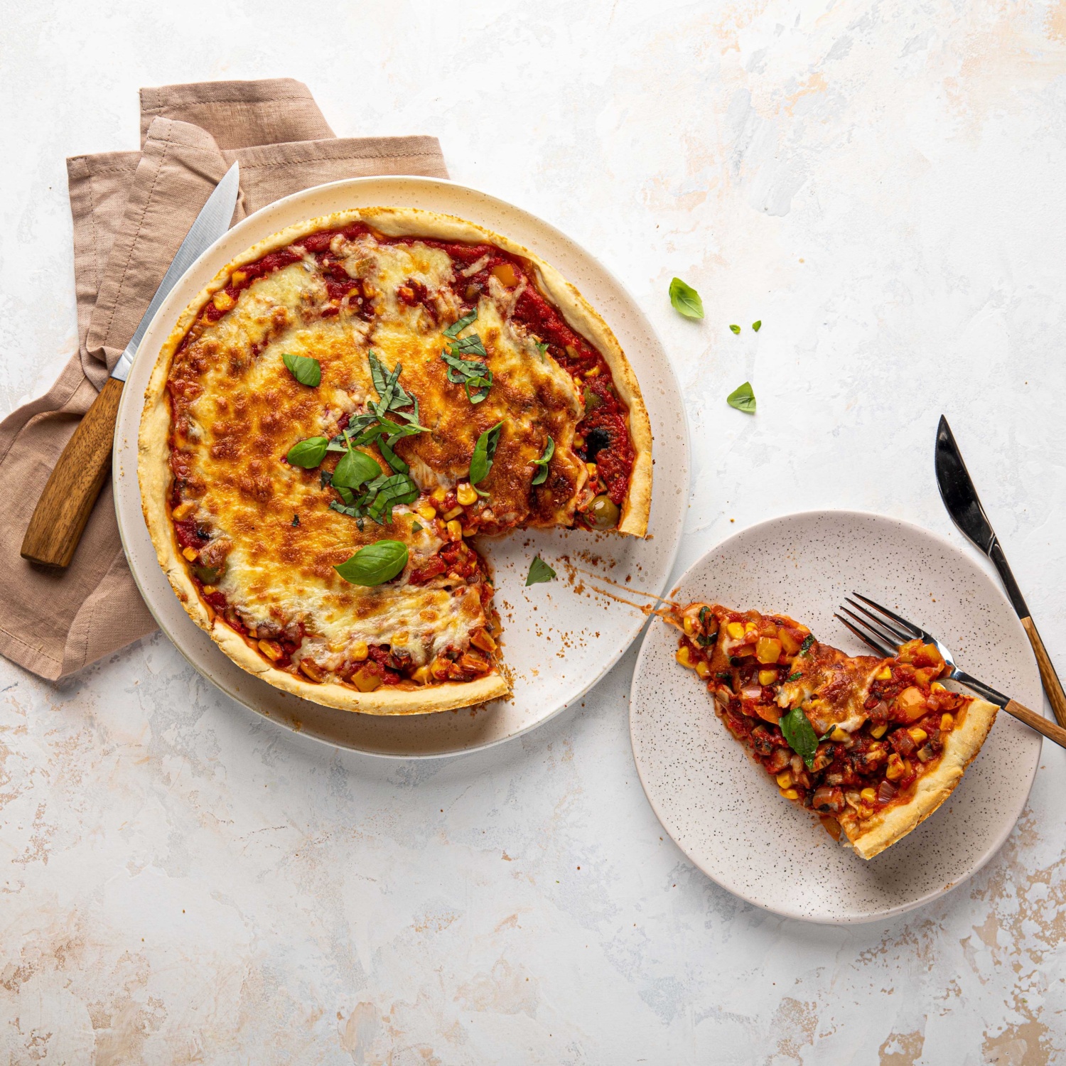 Kuchen oder Pizza? Deep-Dish-Pizza ist ein Klassiker der amerikanischen Küche. Einfach gemacht, super sättigend und einfach lecker. Zum Rezept