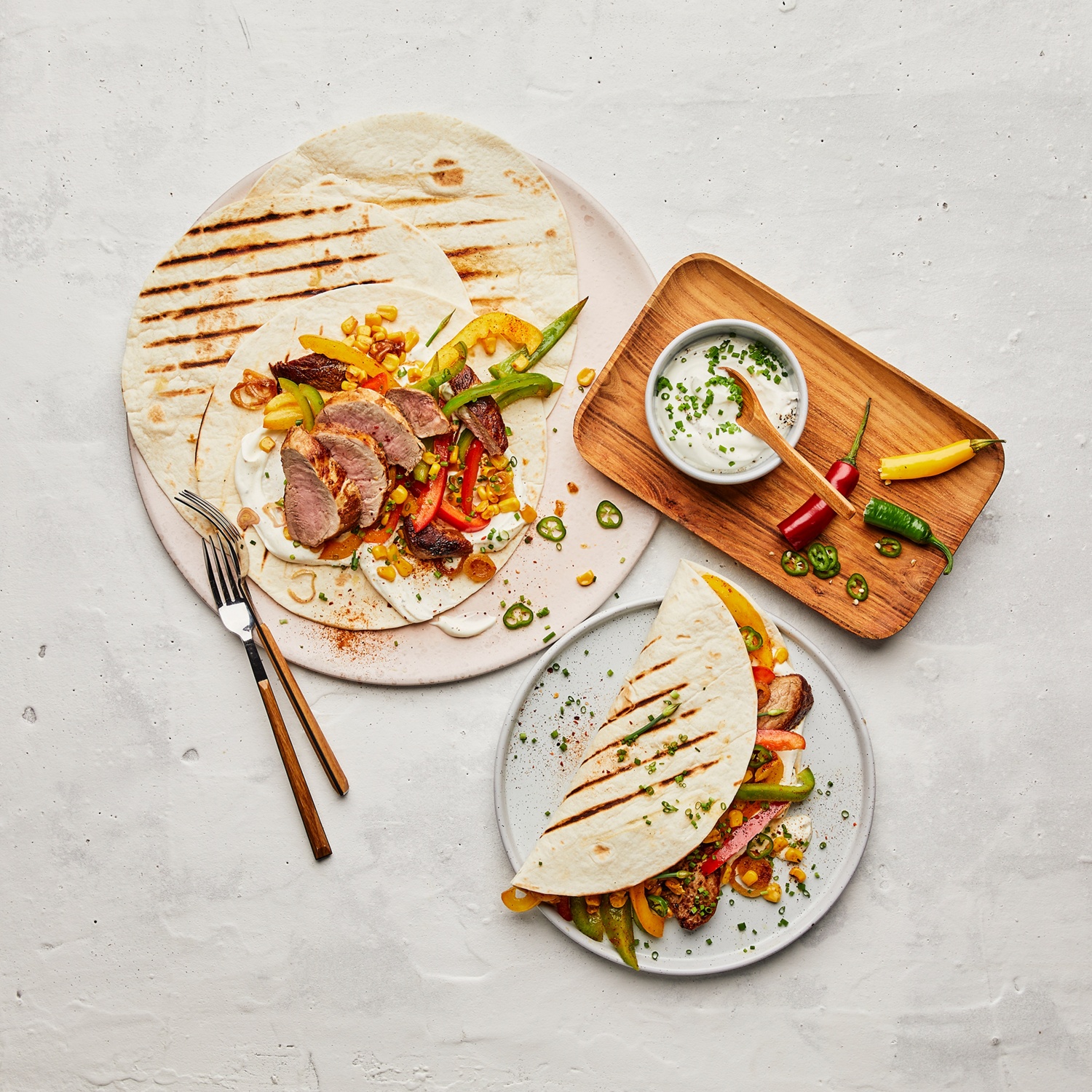 Scharfer Tex-Mex-Spaß zum selber machen: Fajitas sind leckere Wraps, die jeder nach Lust und Laune füllt und zu einer Tortilla rollt. Zum Rezept