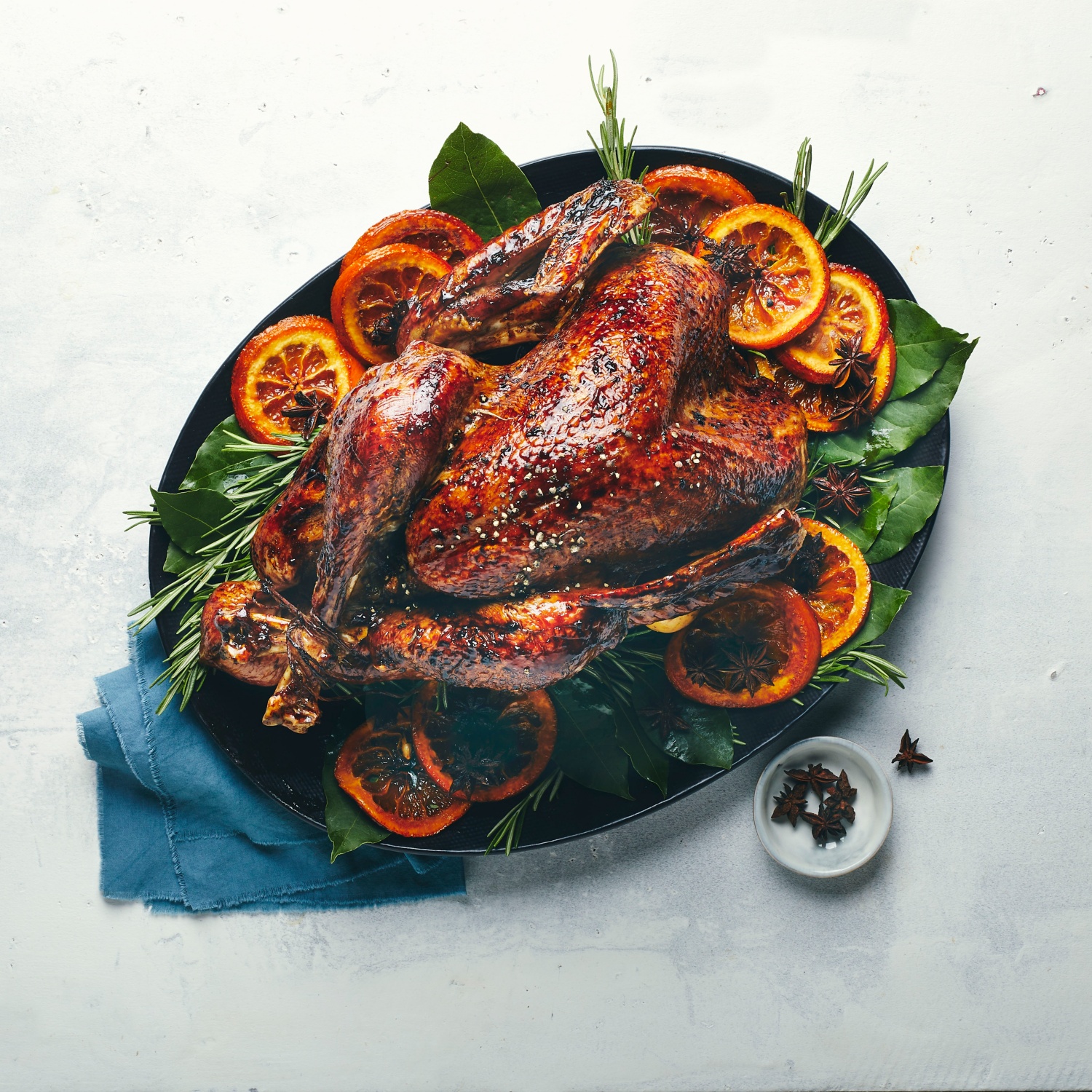 - Die küchenfertige Pute damit füllen und mit der Brustseite nach oben in einen flachen Bräter legen. Die Keulen zusammenbinden. Die Bio-Orangen waschen und in Scheiben schneiden. Mit ein paar Stück Sternanis (optional) zur Pute geben. Im vorgeheizten Ofen bei 190 °C Umluft (210 °C Ober- und Unterhitze) ca. 30 Minuten backen.