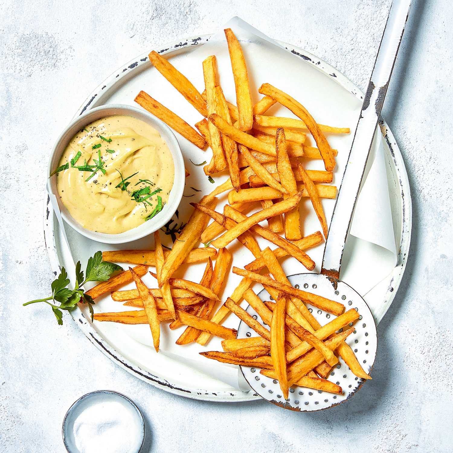 Schnell, einfach und ohne Fritteuse: Als knusprige Beilage oder als Snack für zwischendurch – Fritten mit Joppiesauce sind einfach richtig lecker. Typisch niederländisch serviert mit einem Dip aus Eiern und Senf. Zum Rezept
