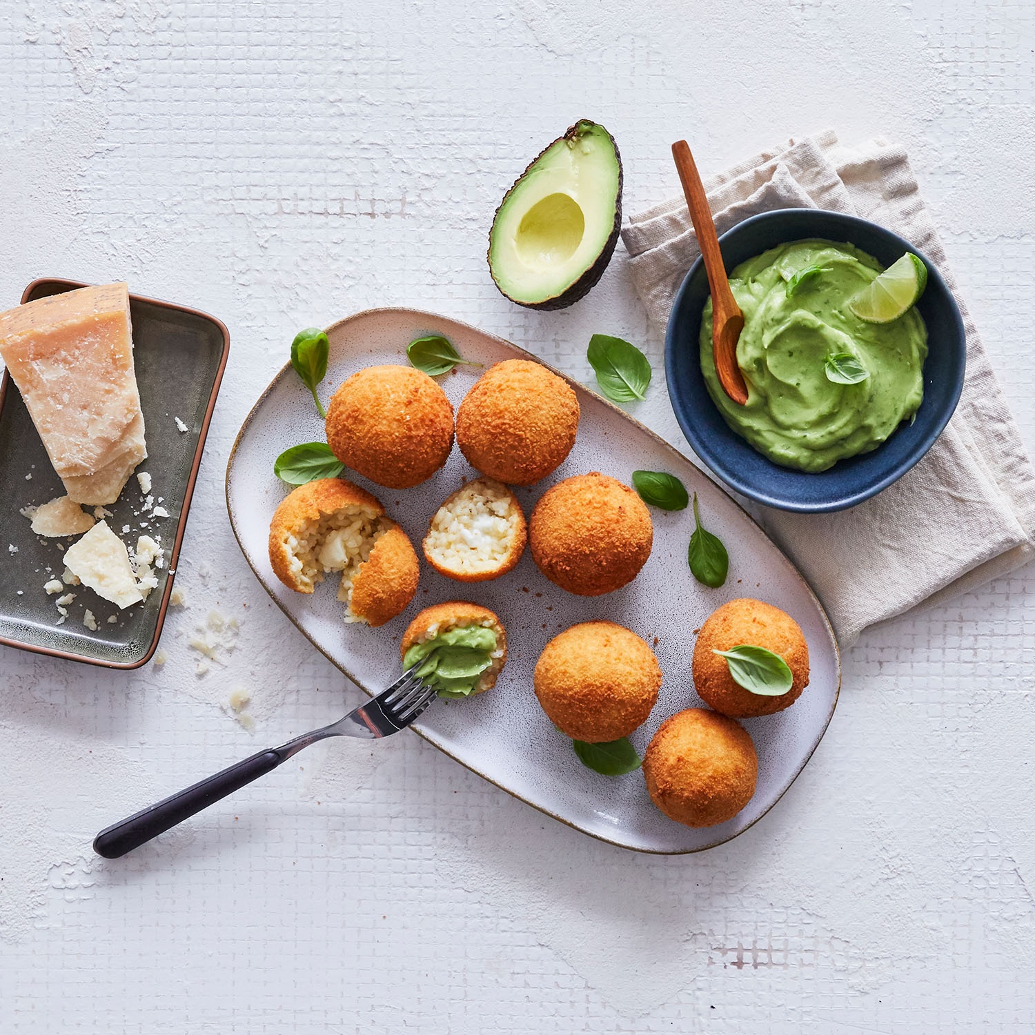 Frittierte Käse-Reisbällchen mit Avocado-Dip
