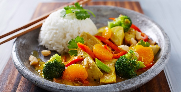 Fruchtiges Puten-Curry mit Mandarinen und Jasminreis