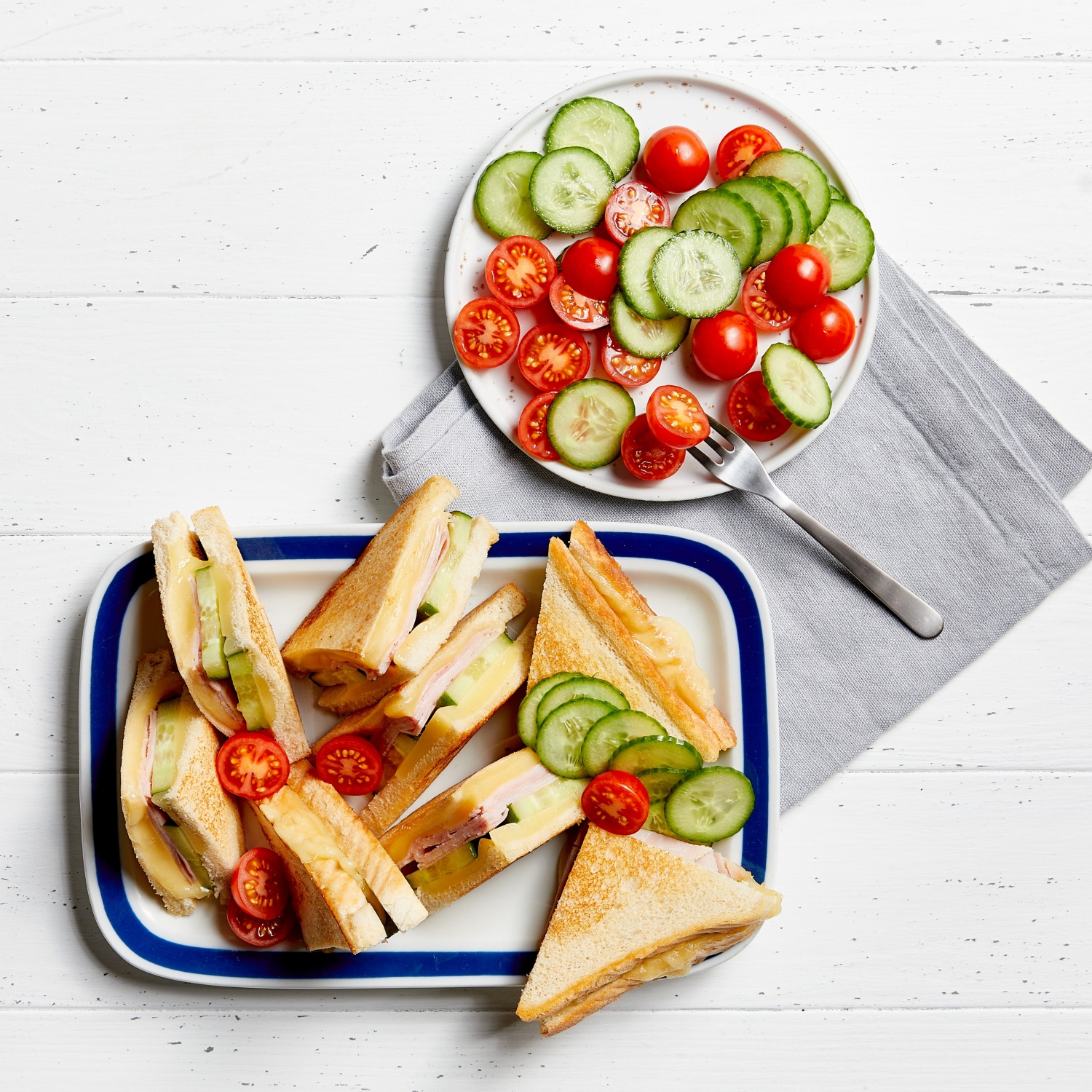 - Die Käse-Sandwiches vierteln und am besten noch warm servieren.