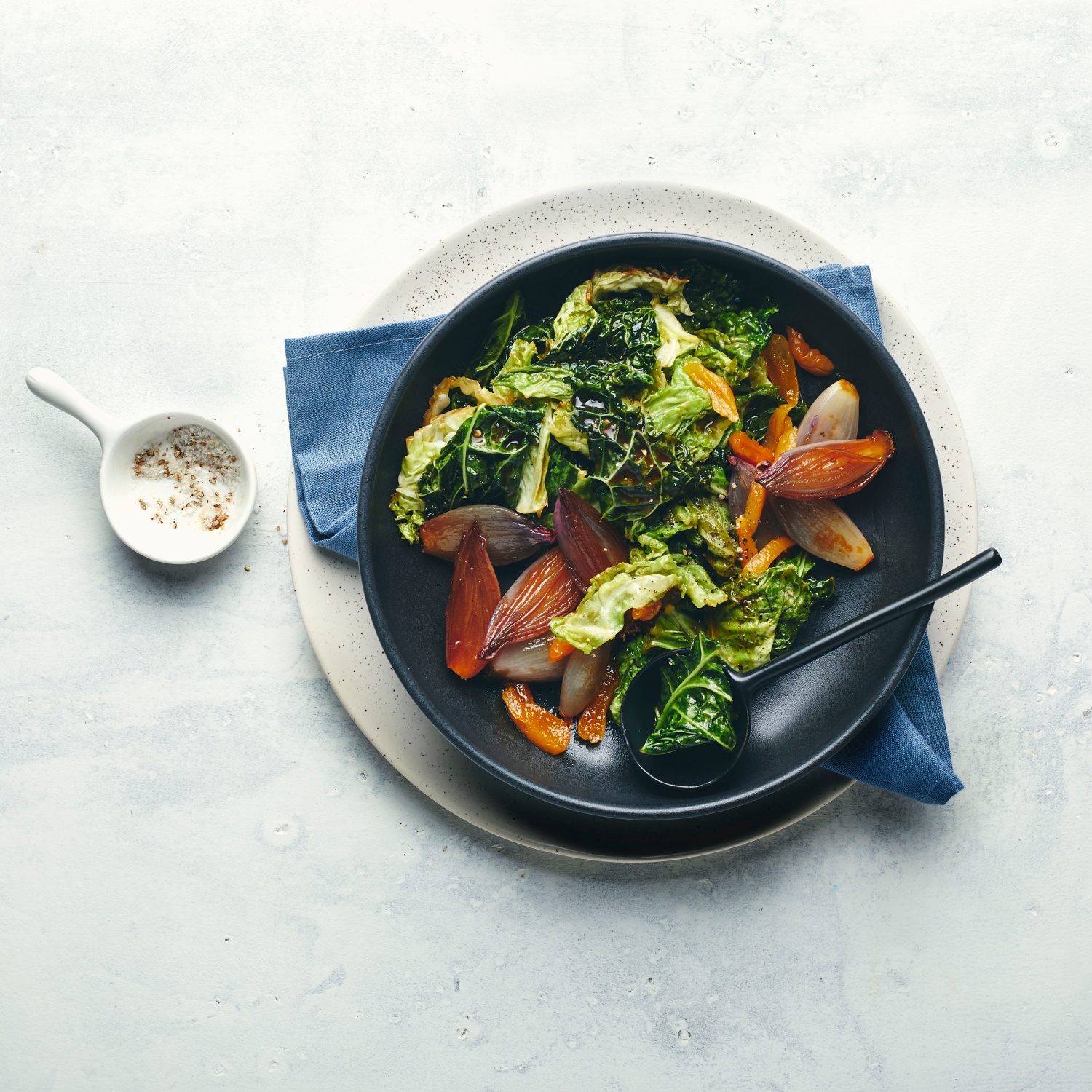 Gebratener Wirsing mit Schalotten und Aprikosen