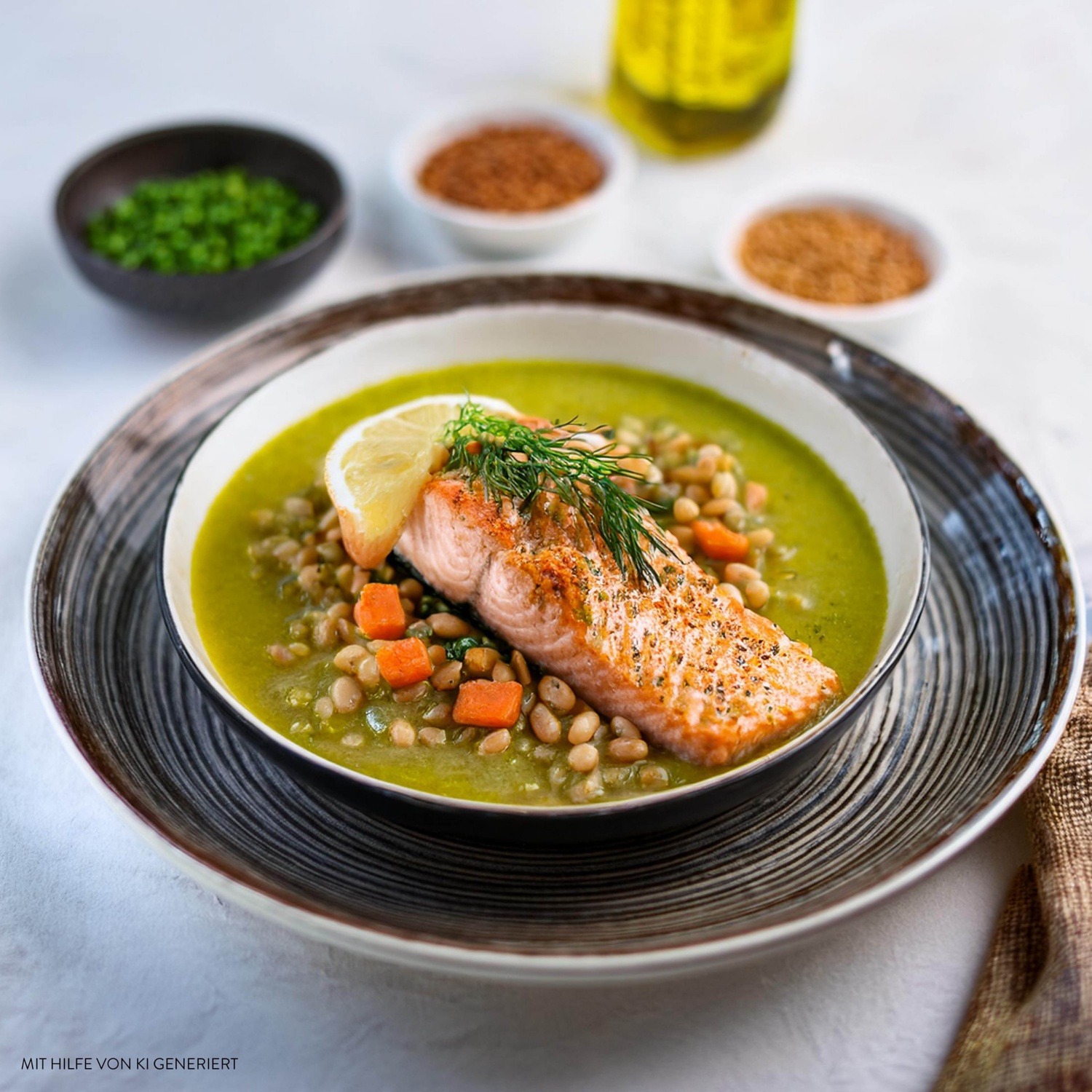 Gebratenes Lachsfilet auf lauwarmen Linsen mit Kräuteröl #WieEinGourmet