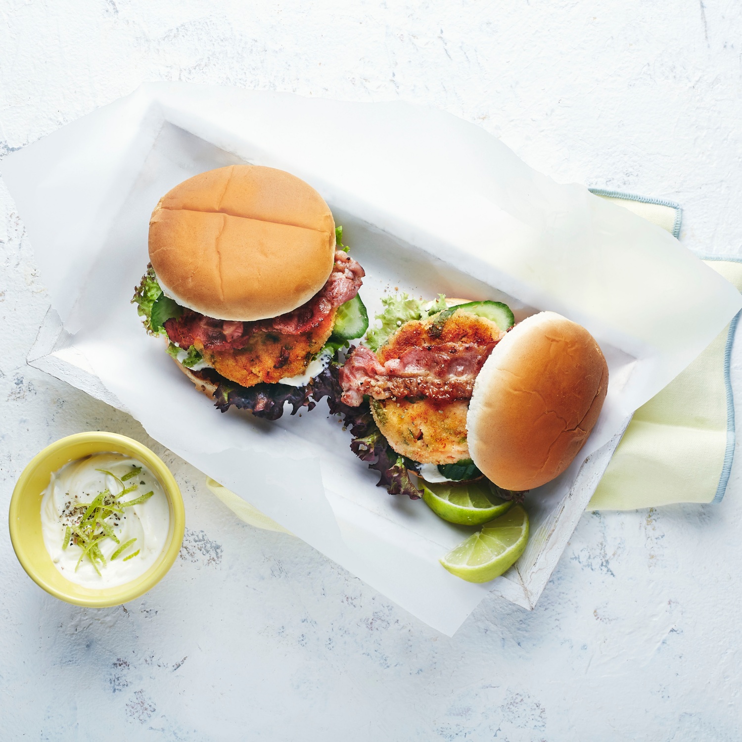 - Den Garnelenburger mit der restlichen Limettenmayo servieren. Dazu passen leckere Pommes frites.