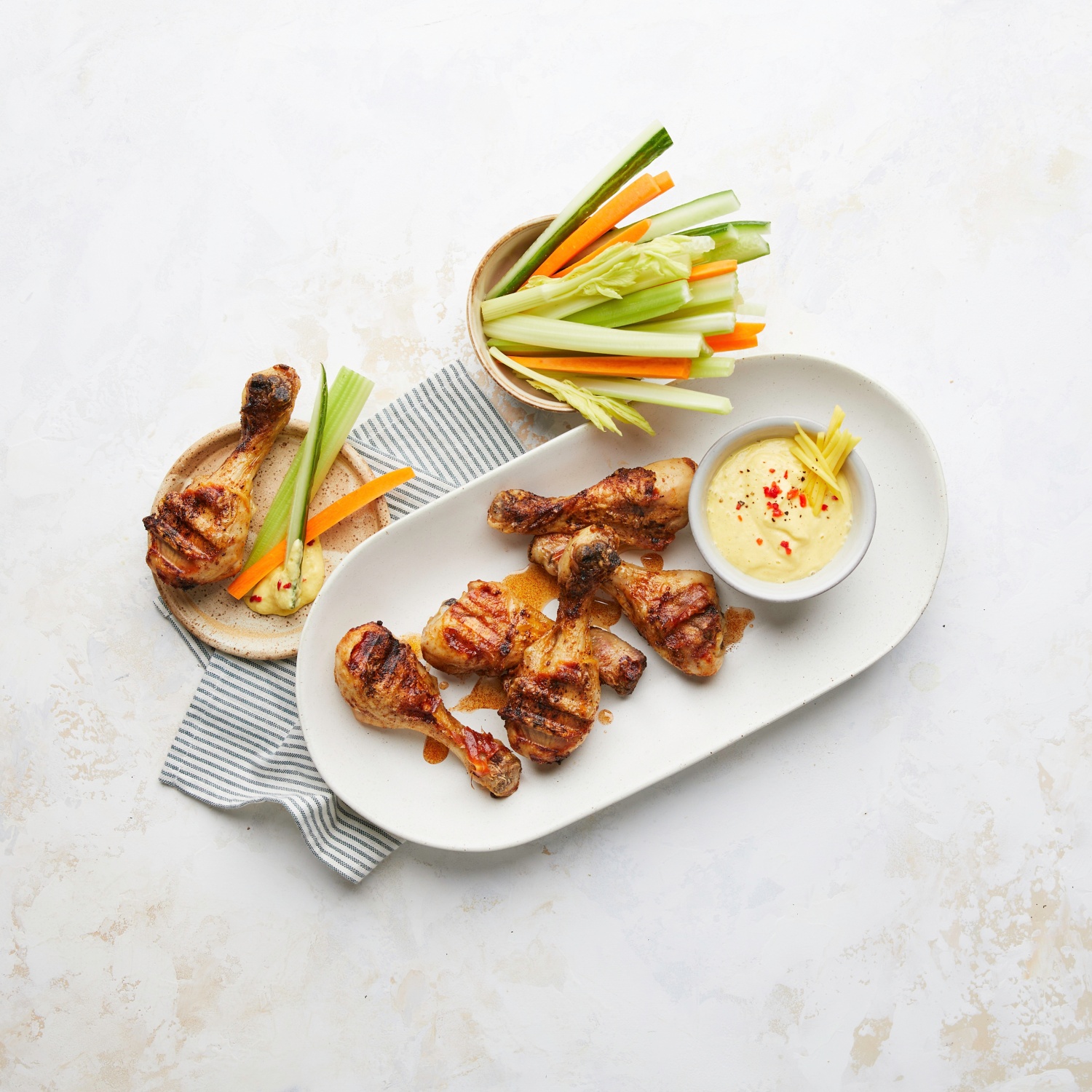 Zum Fußball gucken, für die Gartenparty oder einfach so: Gegrillte Hähnchen-Drumsticks sind schnell gemacht und ein wahrer Leckerbissen für alle Hähnchen-Fans. Dazu gibt’s knackiges Gemüse zum Dippen. Zum Rezept
