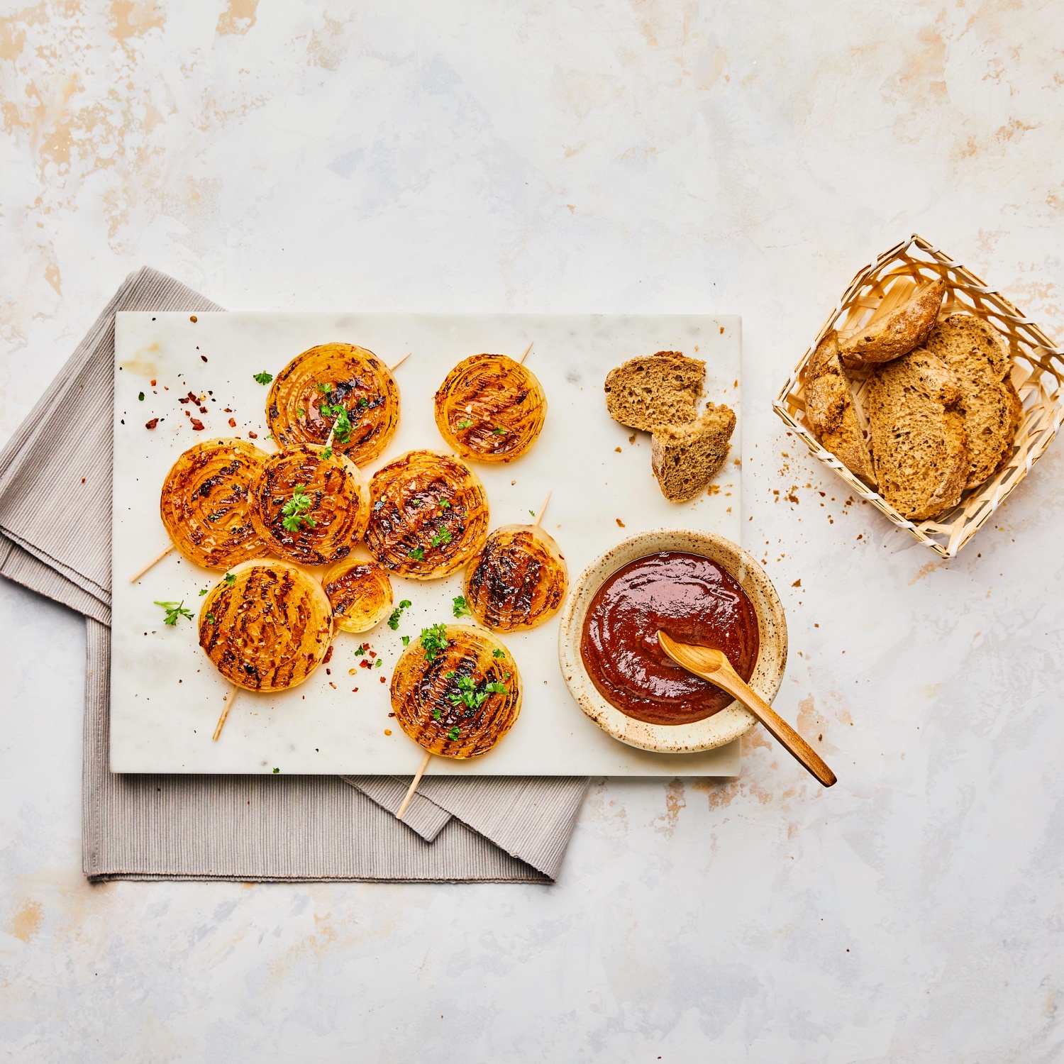 Die gegrillten Zwiebel-Steaks punkten mit einer würzig-süßen Note – perfekt als Beilage oder vegetarisches Grillrezept. Zum Rezept