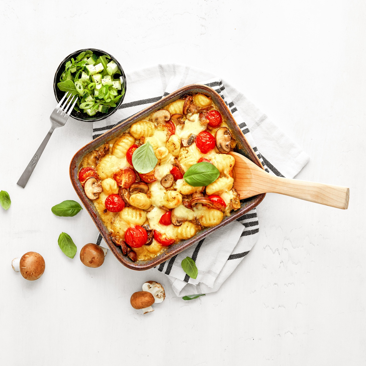 Wenig Zutaten und schnell gemacht: Mit diesem Gnocchi-Auflauf zauberst du italienisches Flair an den Familientisch. Zum Rezept