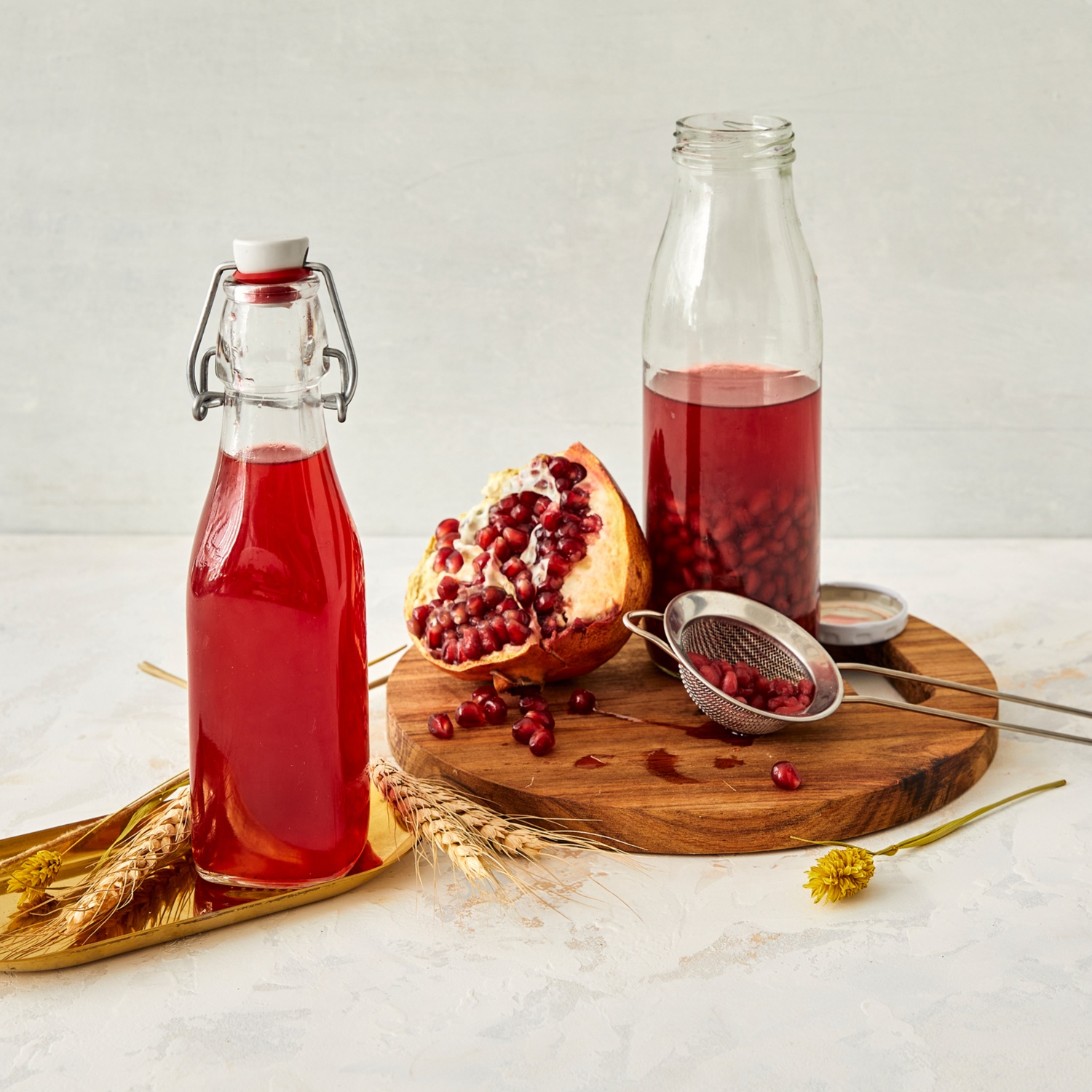 - Dann die Granatapfelkerne abseihen und den Essig wieder in einer Flasche verschließen.
