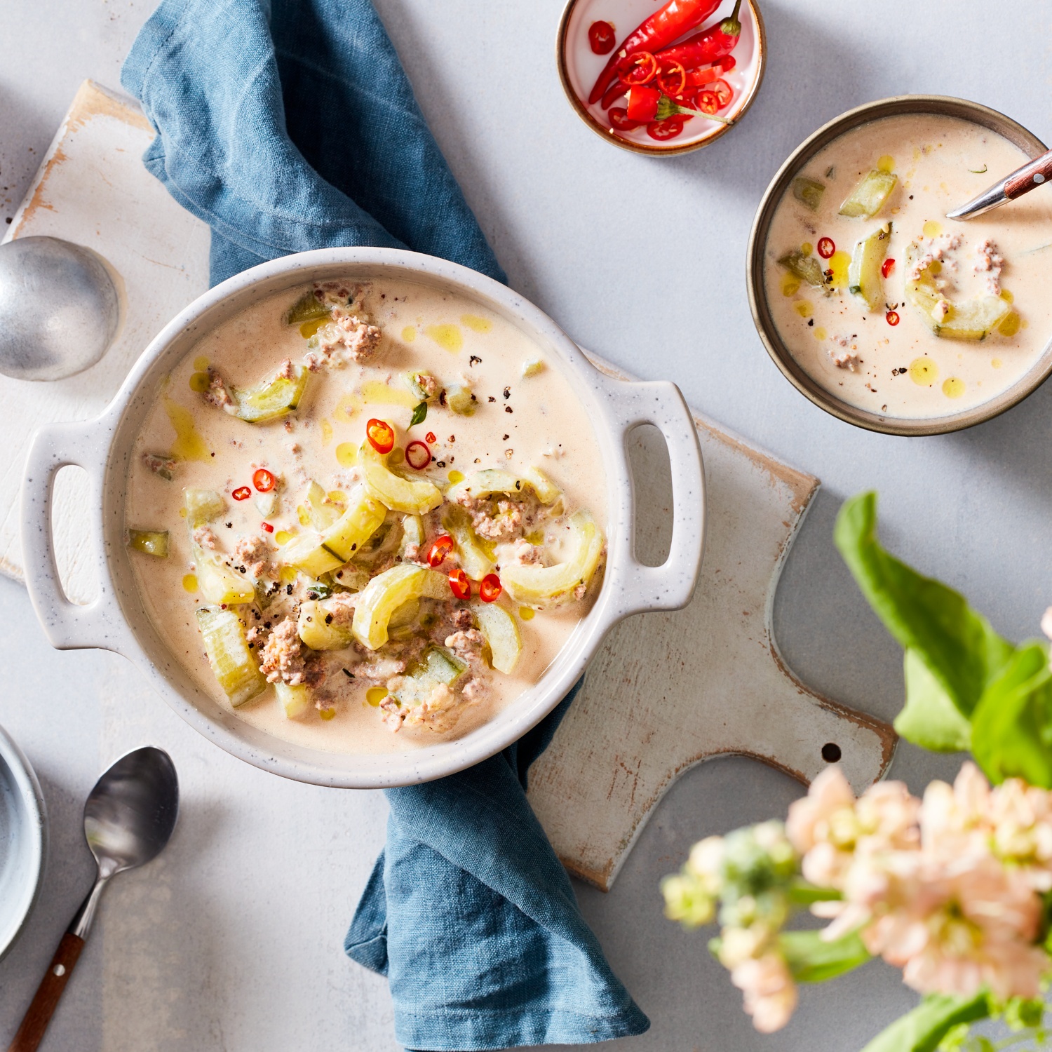 Hackfleisch-Gurken-Thymian-Suppe