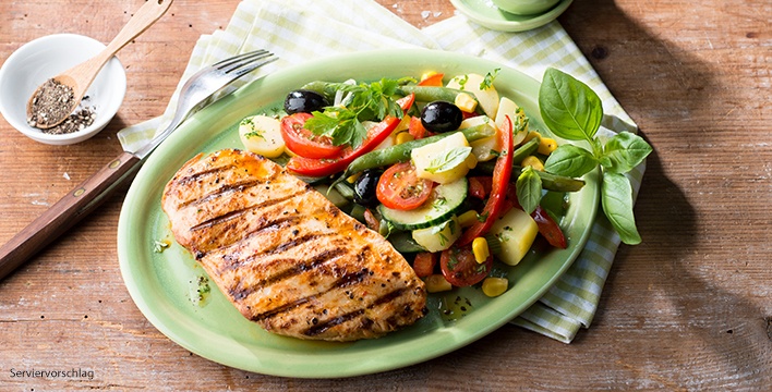 Hähnchensteaks mit Kartoffel-Gemüsesalat