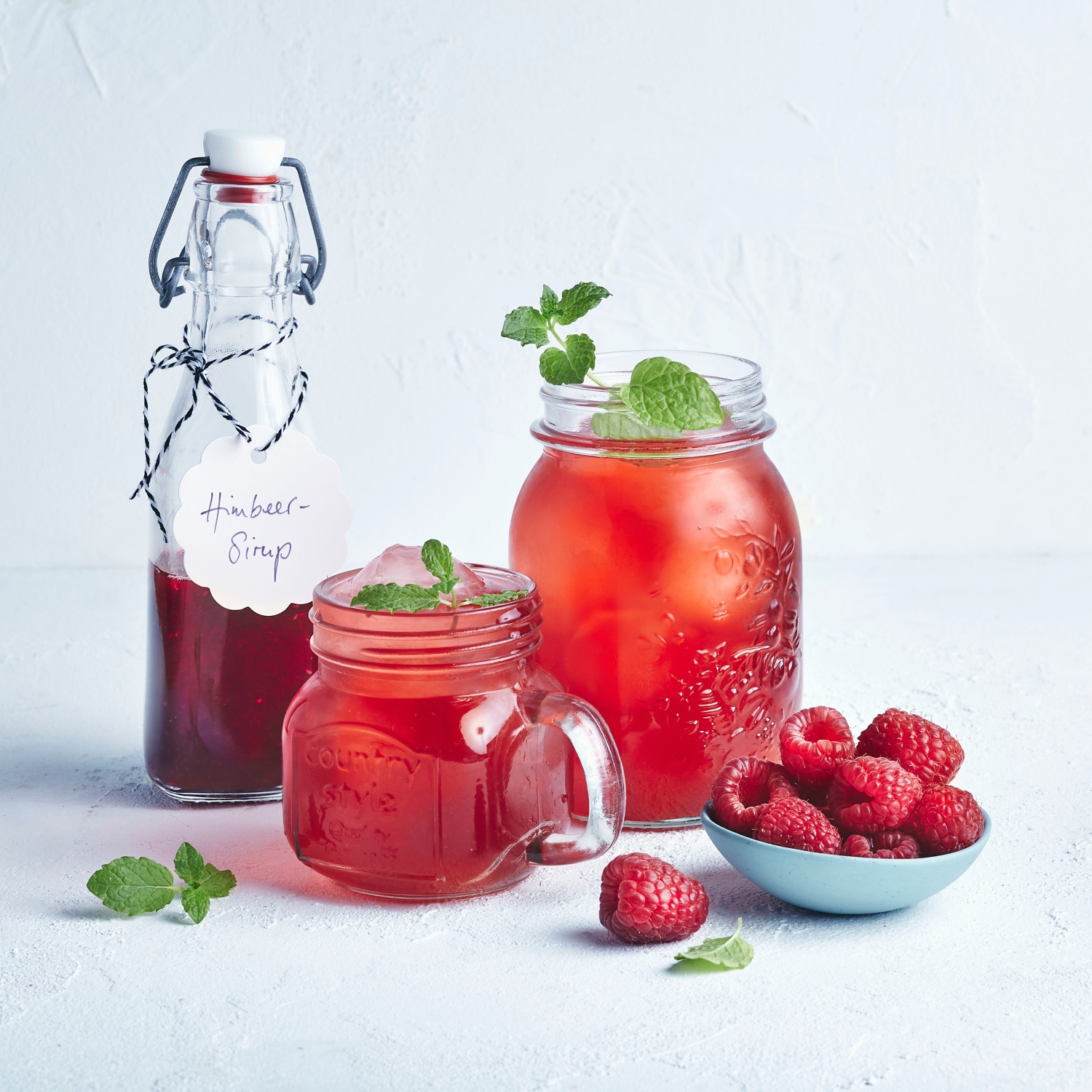 Erfrischender Sommerdrink: Aus Himbeeren und Honig wird Himbeersirup. Mit Eiswürfeln und frischer Minze wird ein leckerer Eistee draus. Zum Rezept