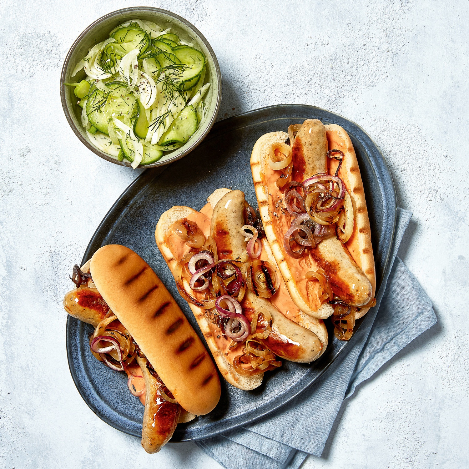 Sommerzeit ist Grillzeit. Probiere unseren Hot Dog mit Bratwurst vom Grill und frischem Fenchel-Gurkensalat. Zum Rezept