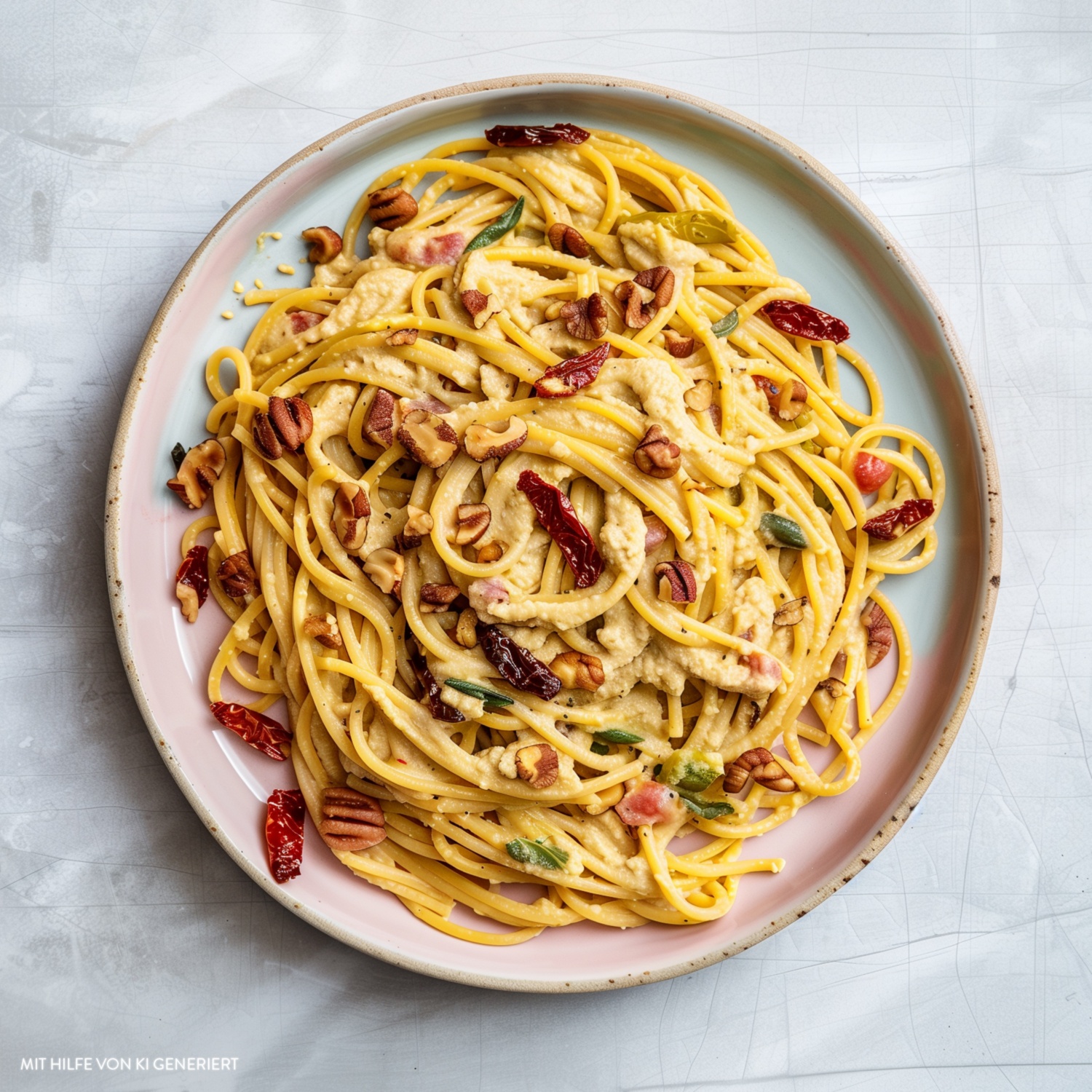 Eine cremige und schnelle Pasta, die mit Hummus als Sauce eine nussige Note erhält. Mit Walnüssen und getrockneten Tomaten verfeinert, ein schnelles Gericht für alle Tage. Zum Rezept