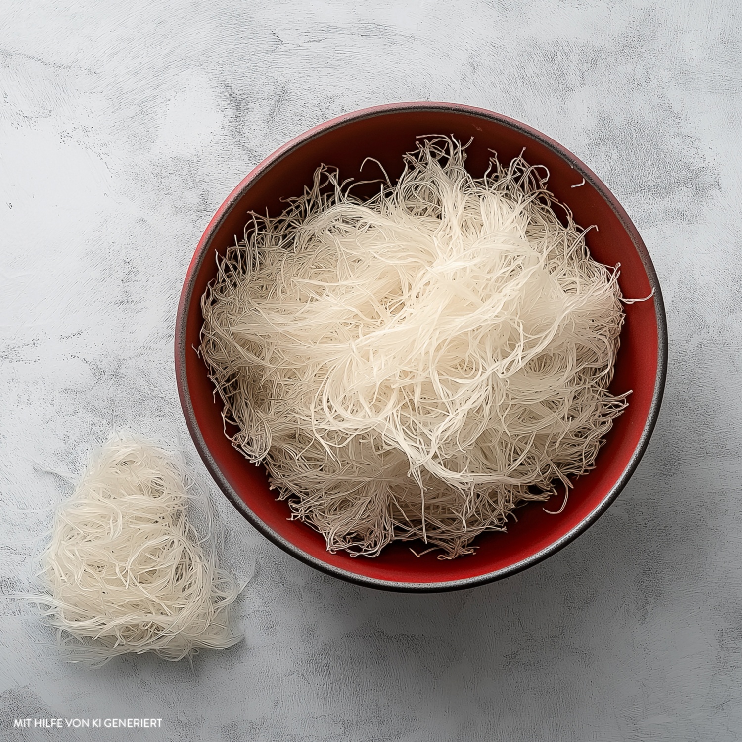 - Die Fäden ein paar Sekunden braten und anschließend vorsichtig aus der Pfanne nehmen. Den Vorgang wiederholen, bis der Teig aufgebraucht ist.