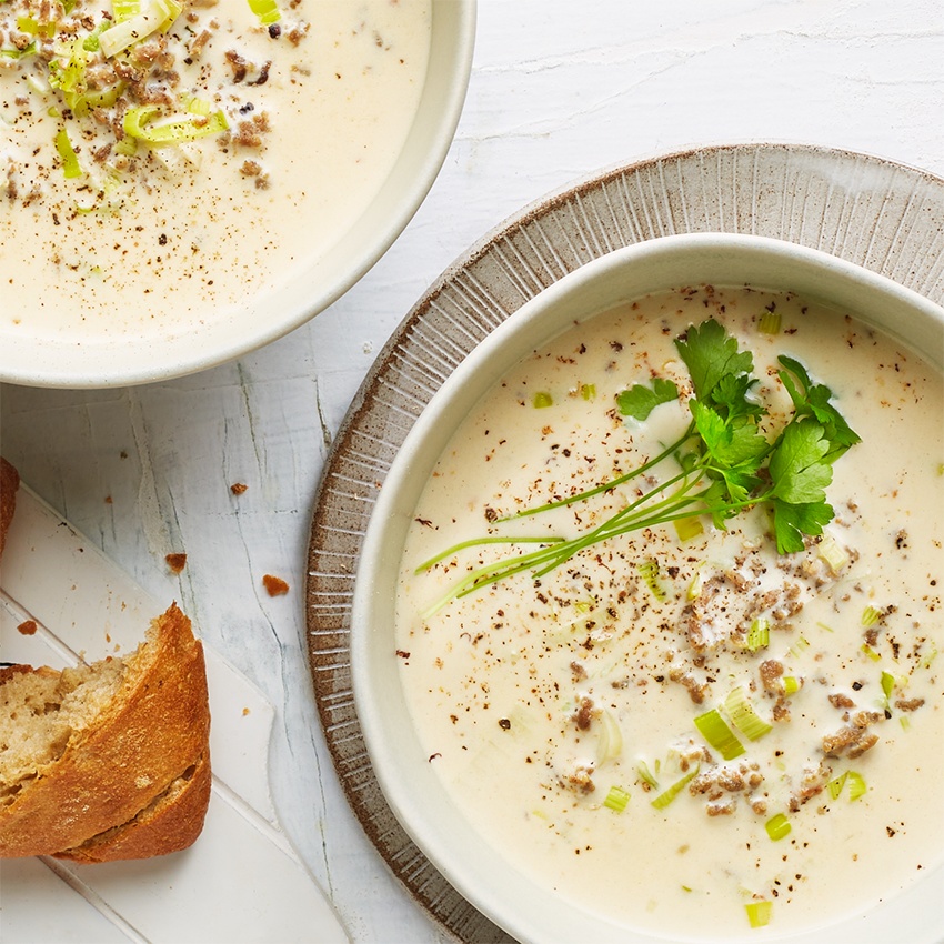 Ideal für die kalte Jahreszeit: Unsere Käse-Lauch-Suppe mit Gehacktem ist einfach zuzubereiten und besticht mit dem unverwechselbaren deftigen Geschmack. Zum Rezept