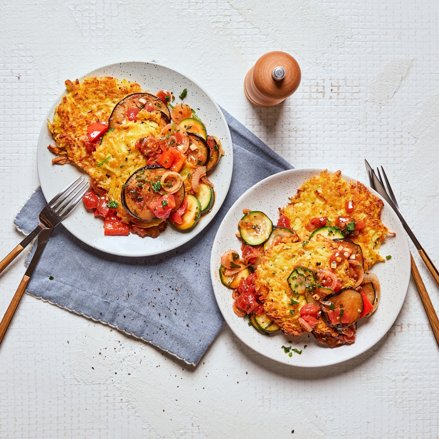 Käse-Rösti mit mediterranem Gemüse