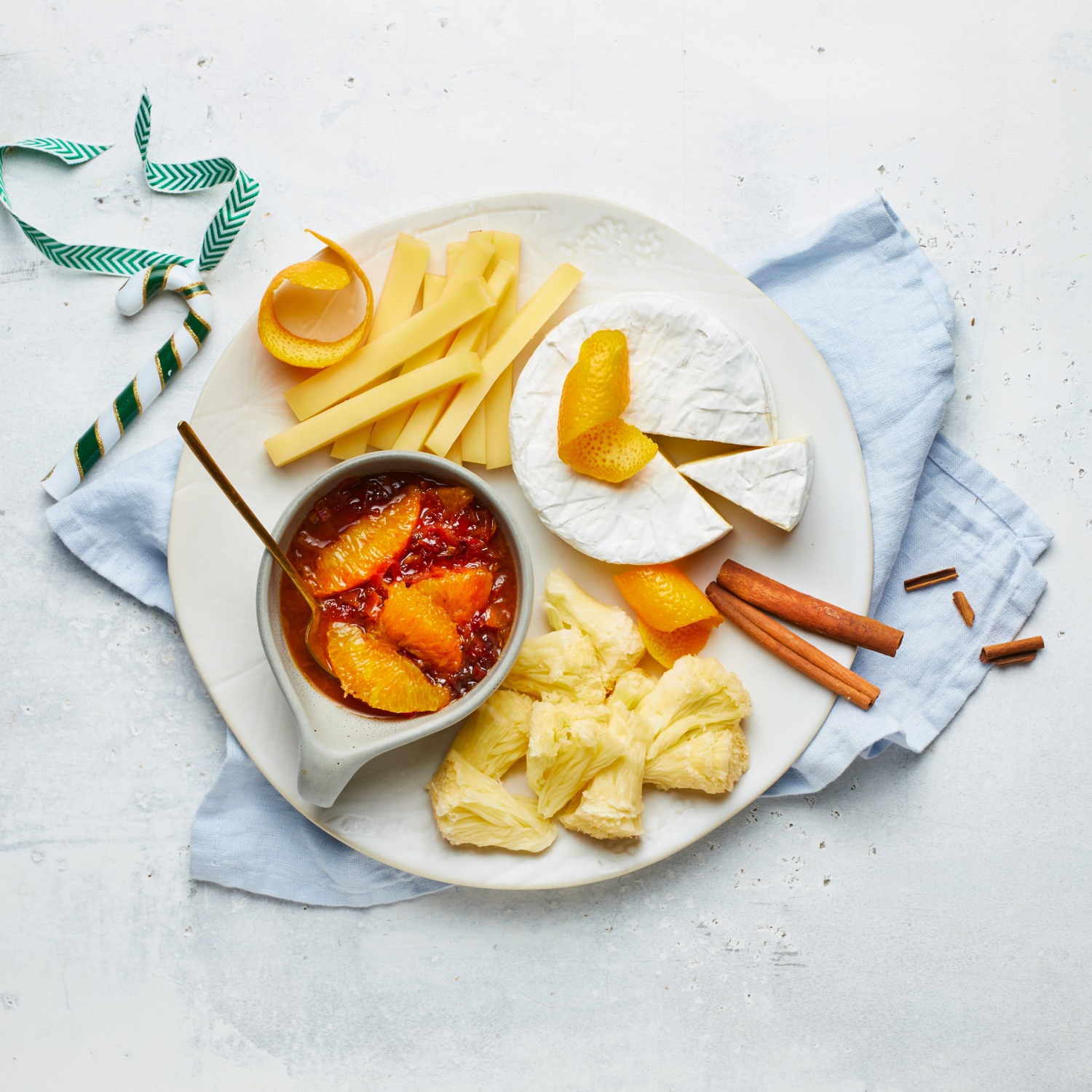 - Den Käse aufschneiden, schön arrangieren und mit dem Orangen-Chutney servieren.