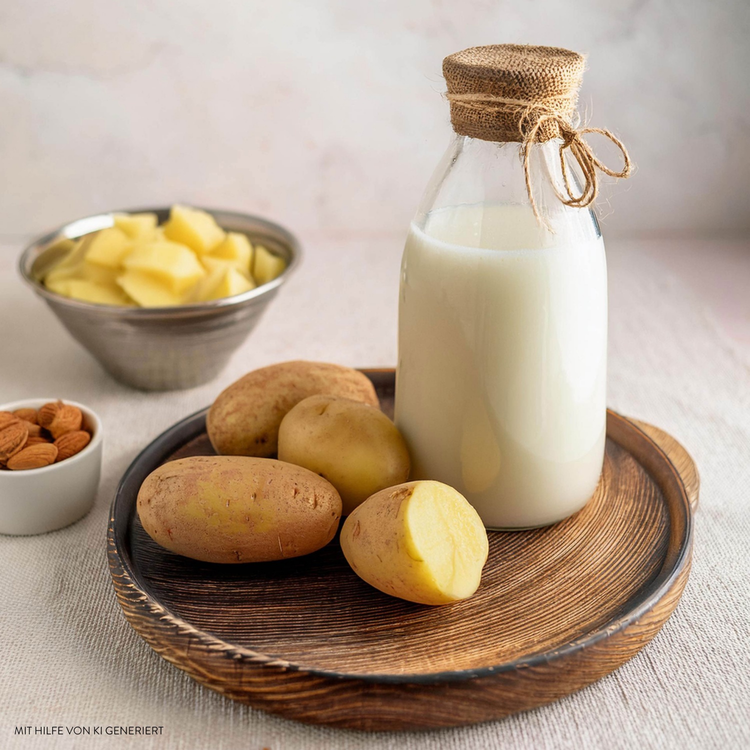 2. Die Kartoffeln, das Wasser, die Mandeln, die Vanillepaste und den Agavendicksaft in einem leistungsstarken Mixer sehr gut mixen, bis eine glatte Masse entstanden ist. Ein sauberes Küchentuch in ein Sieb legen, die Kartoffelmasse hineingießen und durchseihen. Trinken und Genießen.
