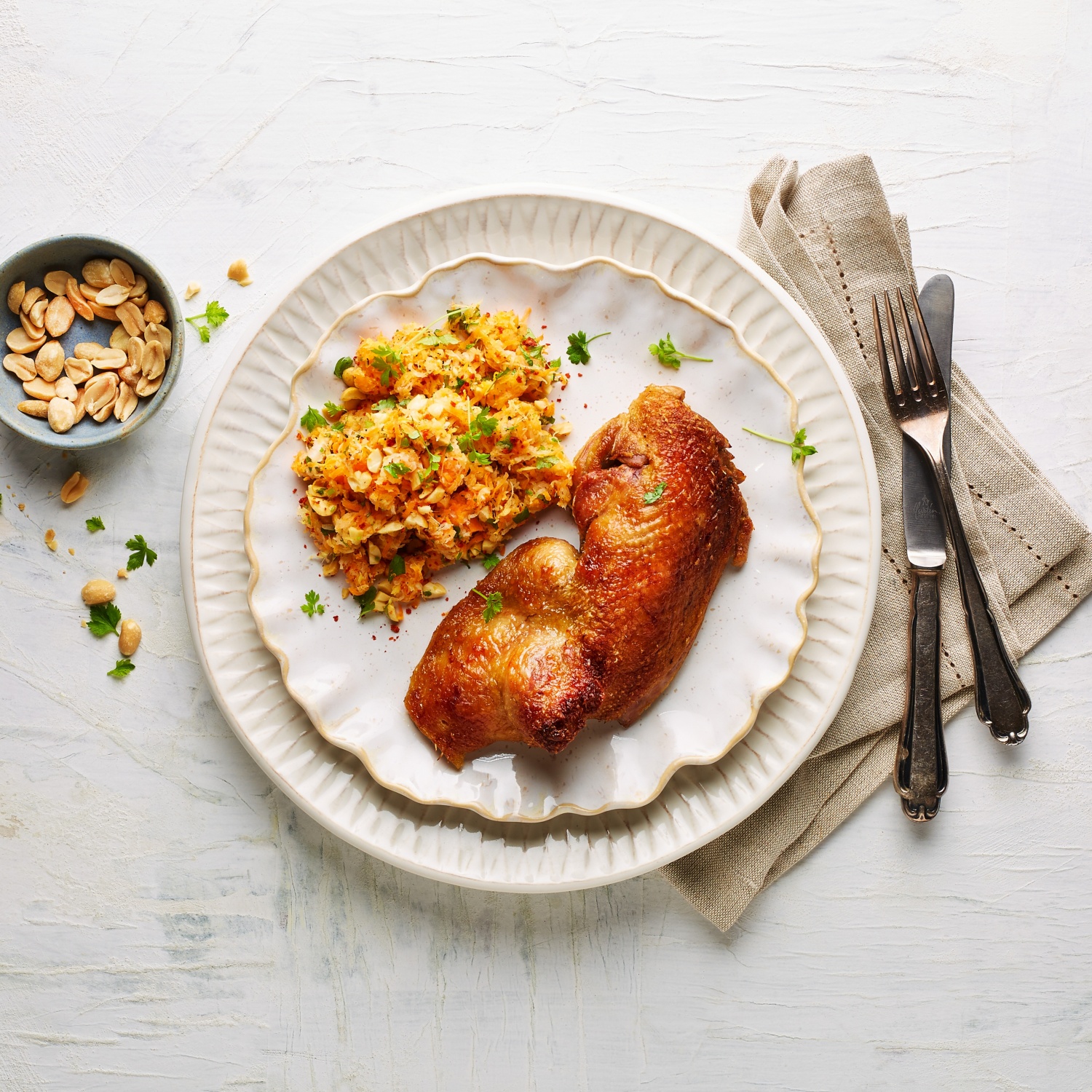 Ein zartes Fleisch mit einer knusprigen Beschichtung, die die Säfte und die intensiven Aromen der Ente bewahrt. Um die Aromen auszugleichen, wird es perfekt durch einen frischen Rohkostsalat ergänzt. Zum Rezept