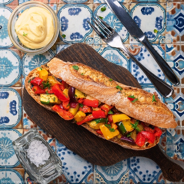 Knuspriges Bocadillo mit Bunter Gemüsefüllung und Aioli