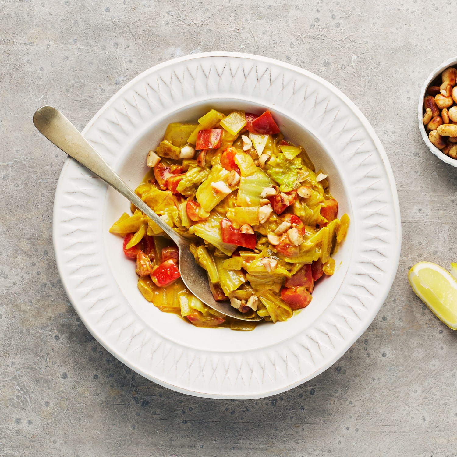 Nussig-cremig, nahrhaft und frisch: Lassen Sie sich von diesem köstlichen Kohl-Erdnusstopf und spritziger Zitrone verführen. Eine Rezeptidee von der GemüseAckerdemie. Gelingt in nur 30 Minuten. Zum Rezept