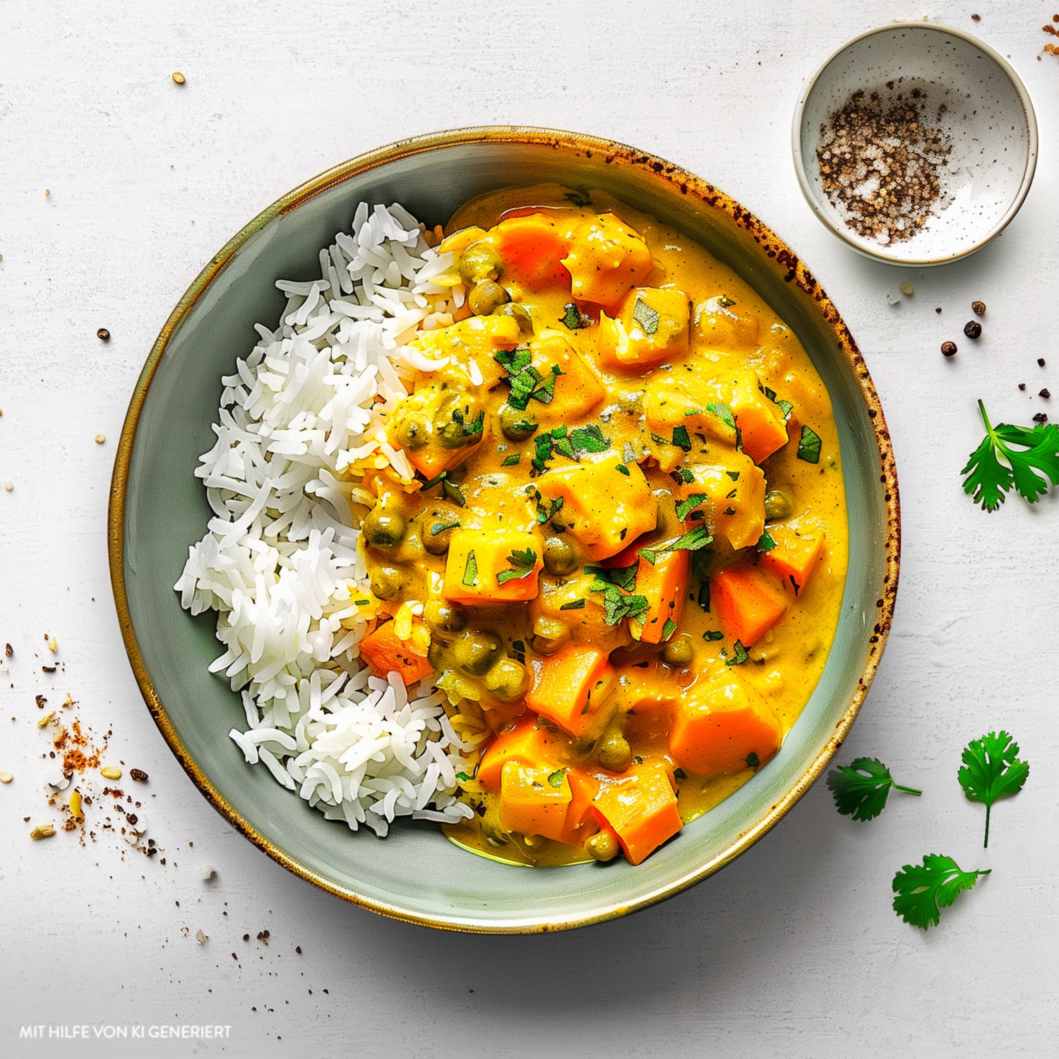 Ein aromatisches Kohlrabi-Curry, das mit exotischen Gewürzen, Kokosmilch und zartem Gemüse überzeugt. Serviert mit Reis ist es ein sättigendes und wärmendes Gericht, das sowohl vegetarisch als auch vegan genossen werden kann. Zum Rezept