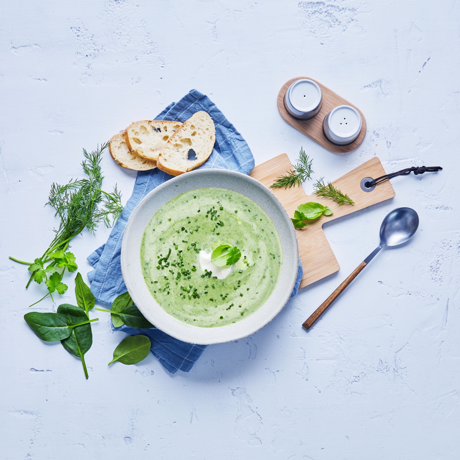 So schmeckt der Frühling: Apfel, Kartoffeln und Spinat vereinen sich hier in einer aromatischen Kräutersuppe. Ein Klecks Crème fraîche verleiht der Suppe eine schöne Cremigkeit. Zum Rezept